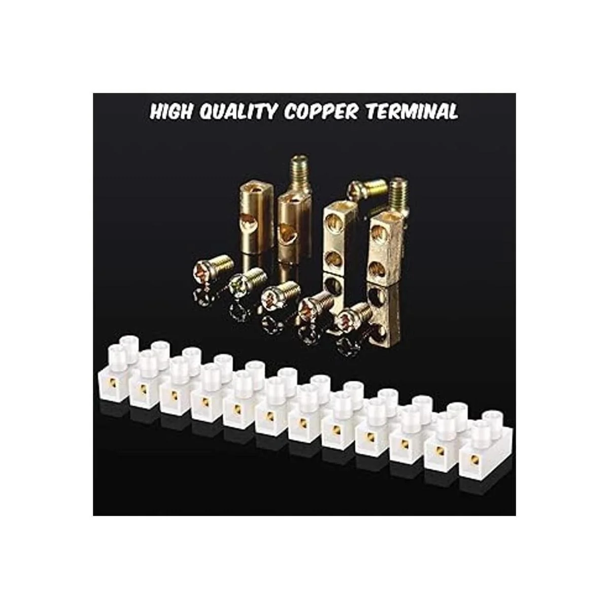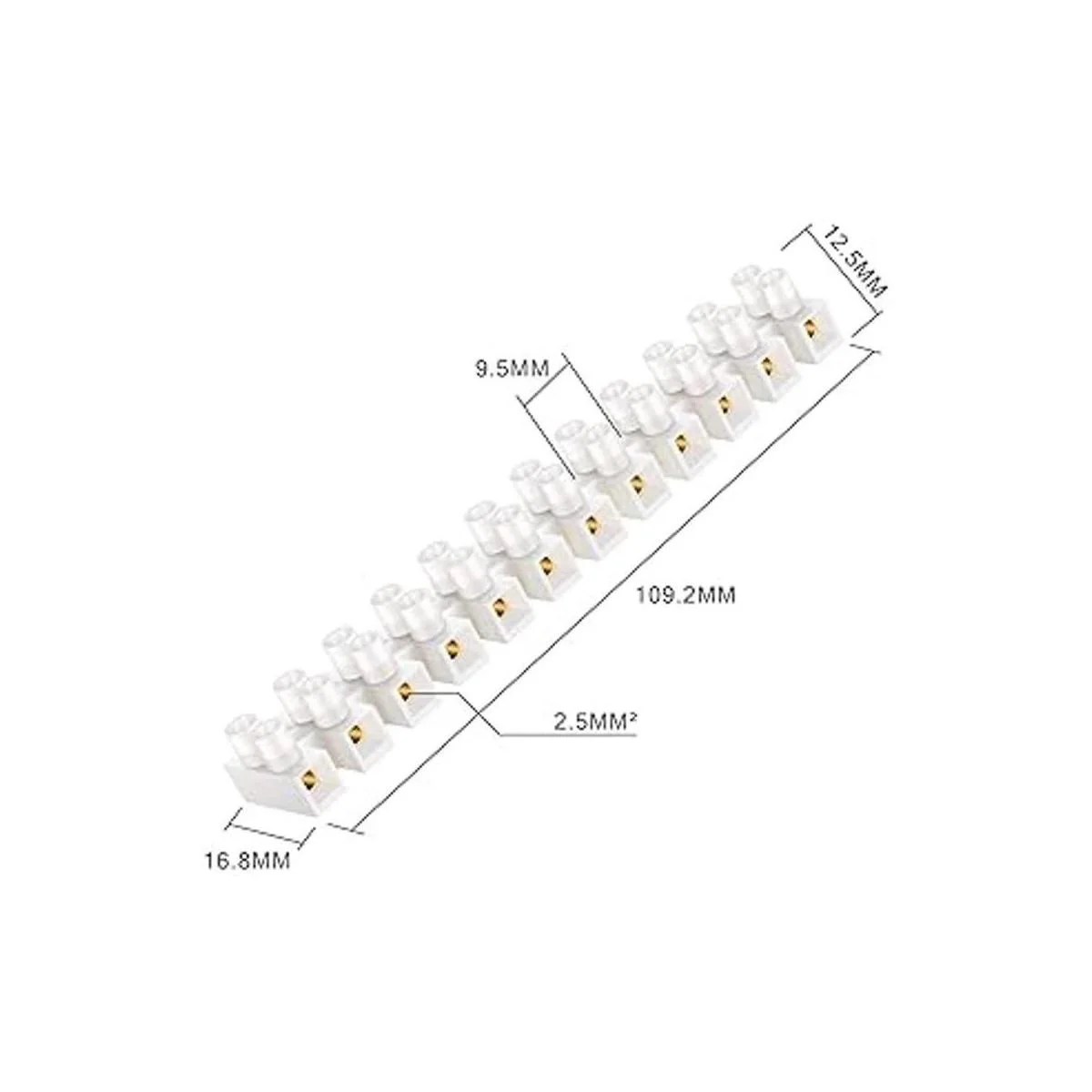 Bloque de terminales, conector de terminal de tornillo blanco, bloque de barrera eléctrica de doble fila, tira de terminales de 12 posiciones, 10 amperios 380 V 10