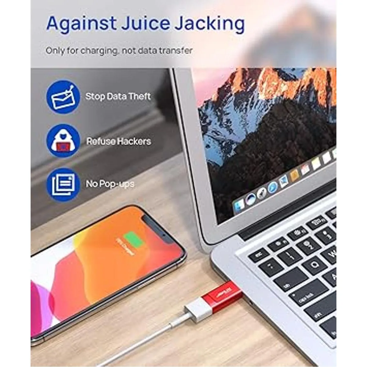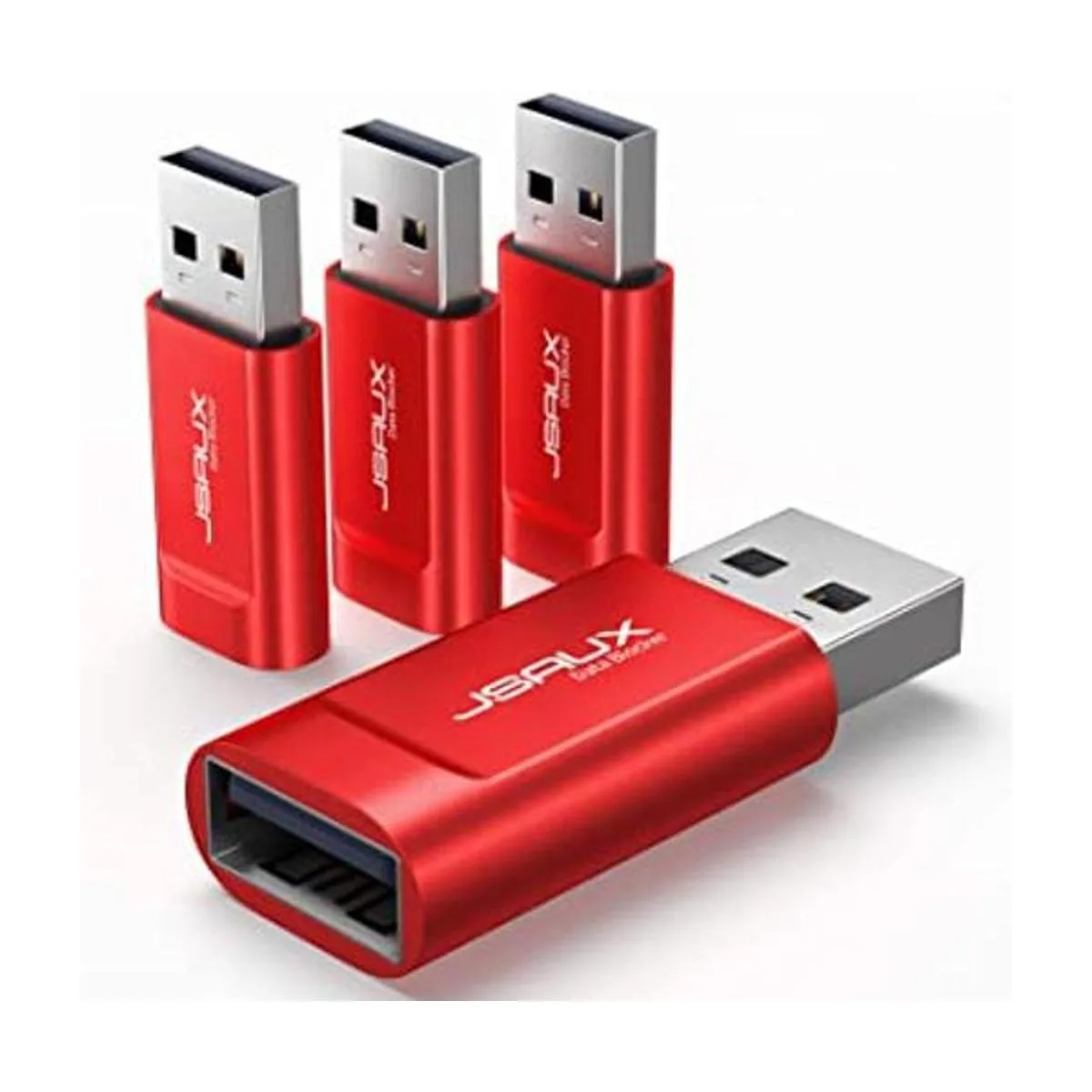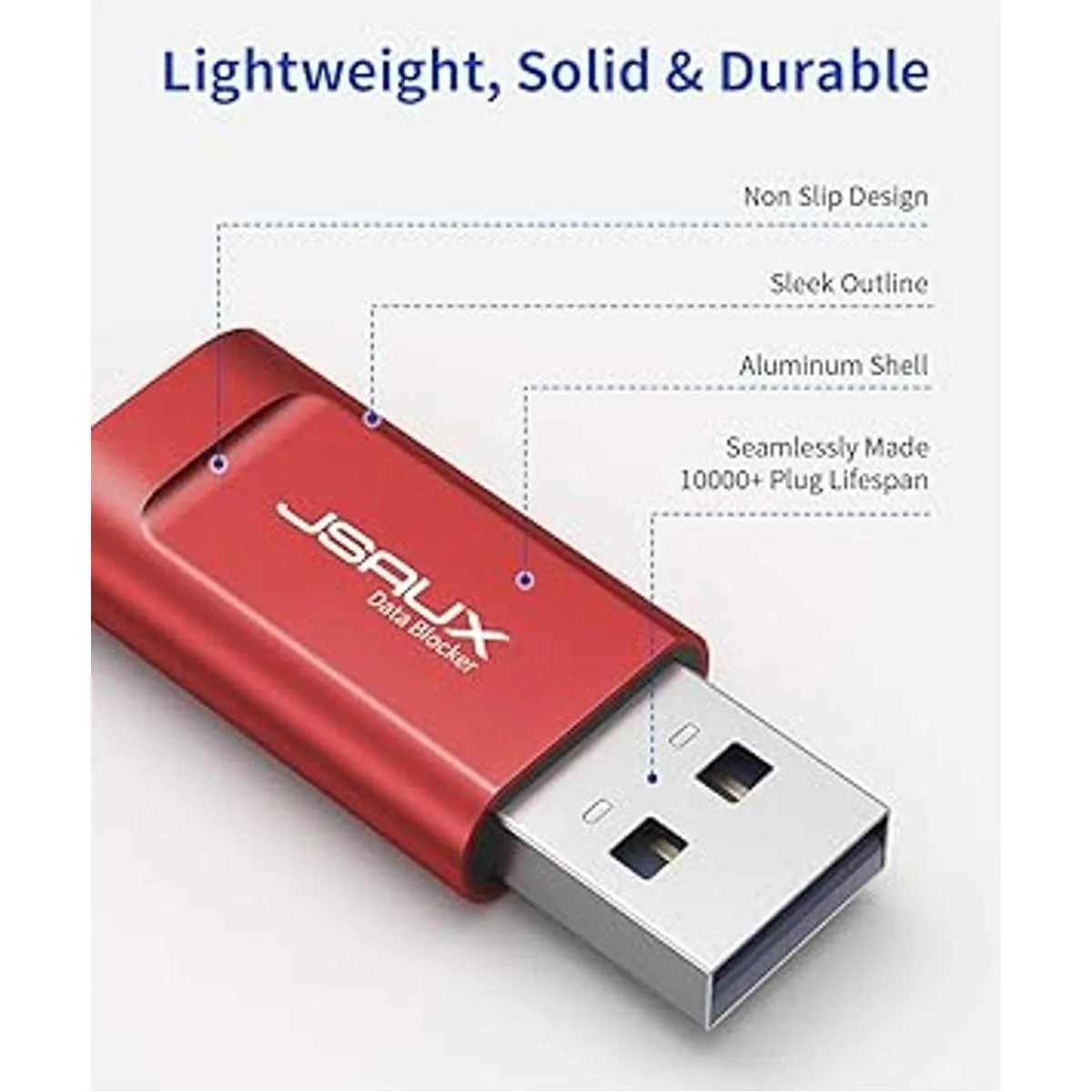 Bloqueador de datos USB, JSAUX paquete de 4 USBA Defender solo para carga rápida, protege contra el levantamiento de jugos, rechaza la piratería proporciona una carga segura, rojo