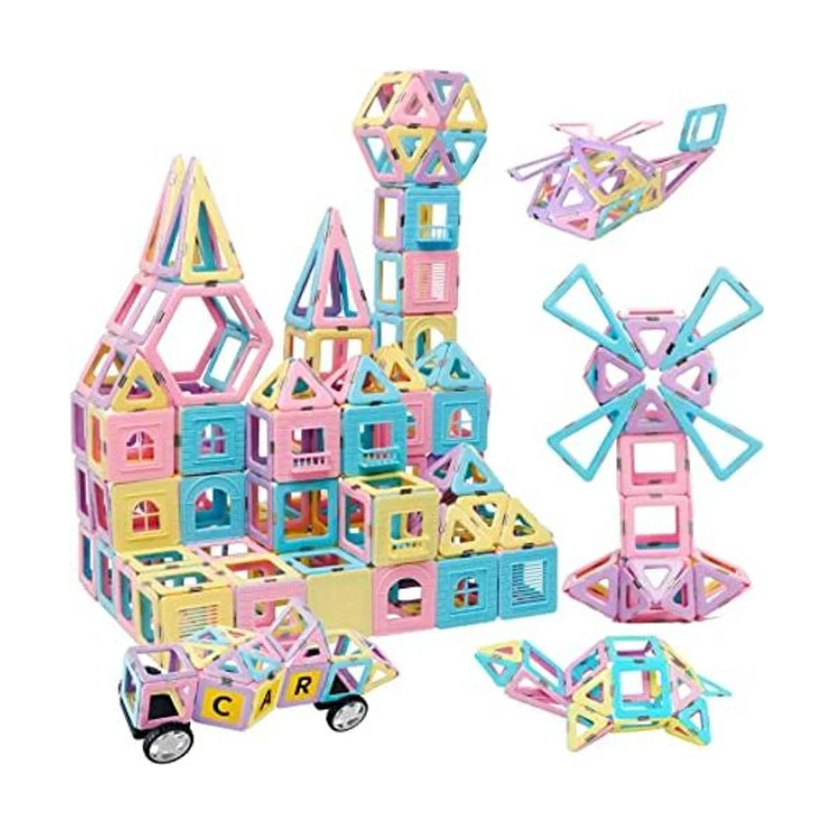 Bloques de construcción magnéticos para niños, 136 piezas de construcción de castillo creativo 3D, juego de apilamiento magnético de inteligencia preescolar, juguetes STEM para niñas y niños a partir de 3 años color macarón