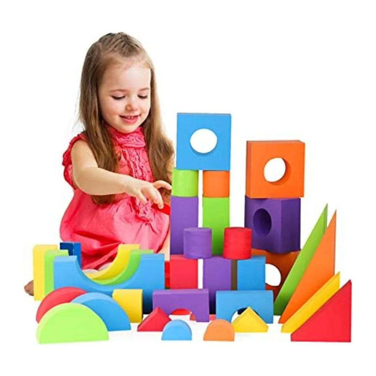 Bloques de espuma de construcción grandes para niños pequeños, 30 piezas gigantes, bloques de construcción grandes, variedad de formas y colores, impermeables, lavables, apilables, no tóxicos, juguetes preescolares de guardería