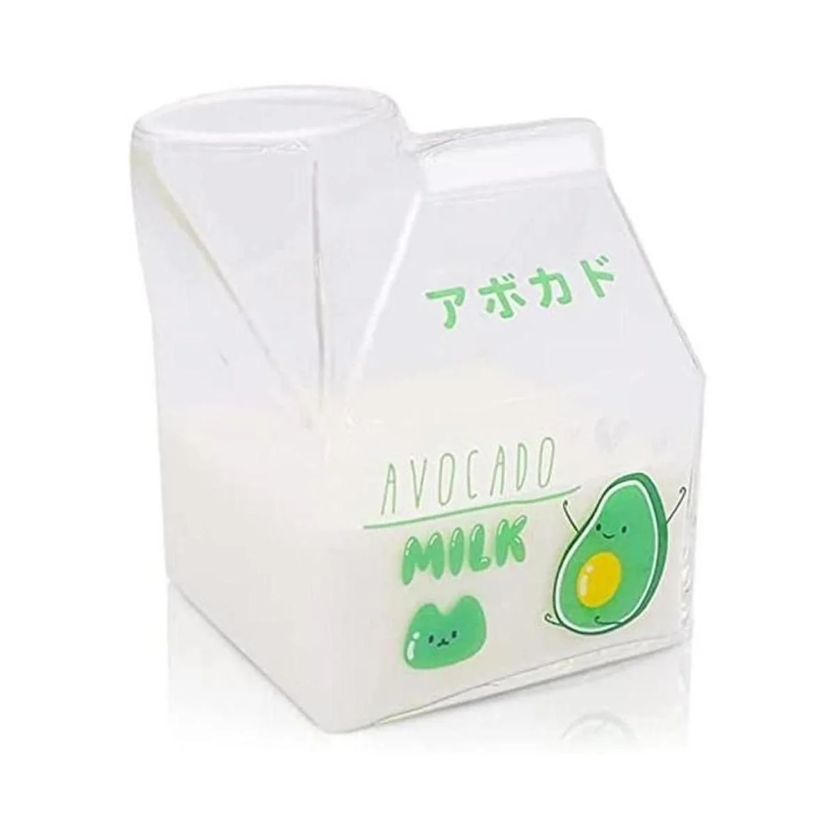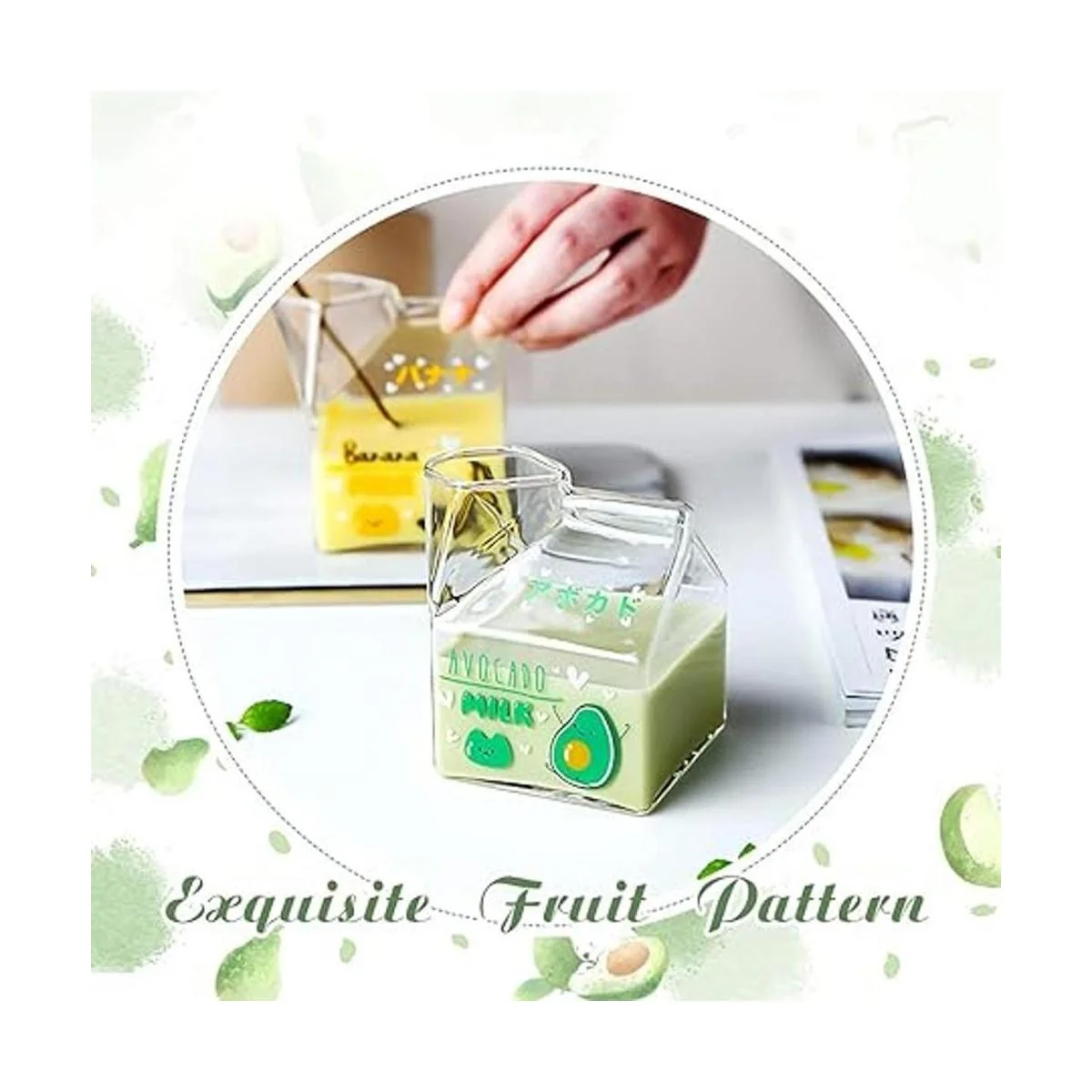 Bonito patrón: el diseño de esta taza de cartón de leche está inspirado en frutas coloridas, saludables y encantadoras, por lo que hemos diseñado cuatro patrones: fresa romántica, plátano rico, melocotón dulce y aguacate saludable. Estos bonitos patrones hacen que la jarra original de cristal transparente sea más vívida y versátil.