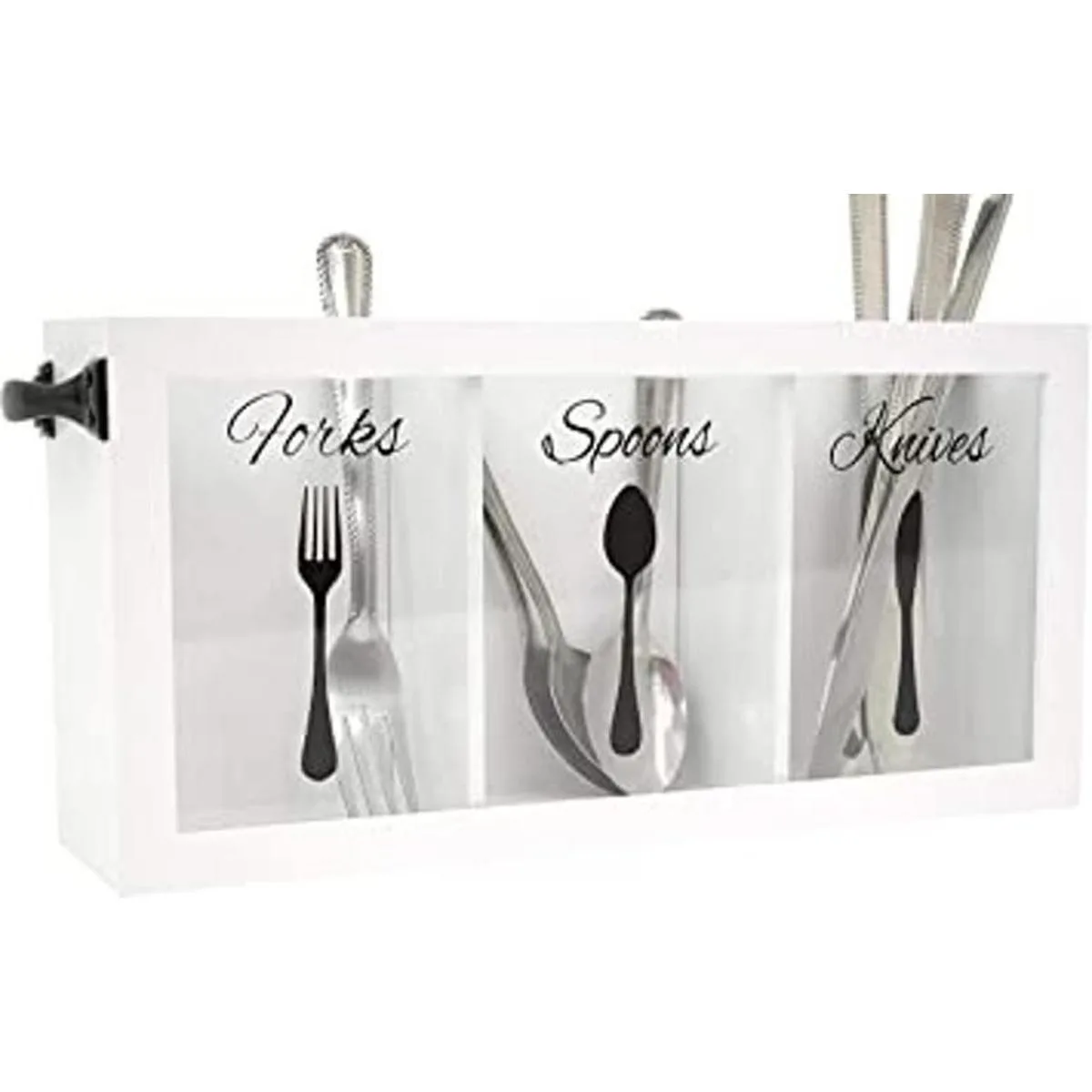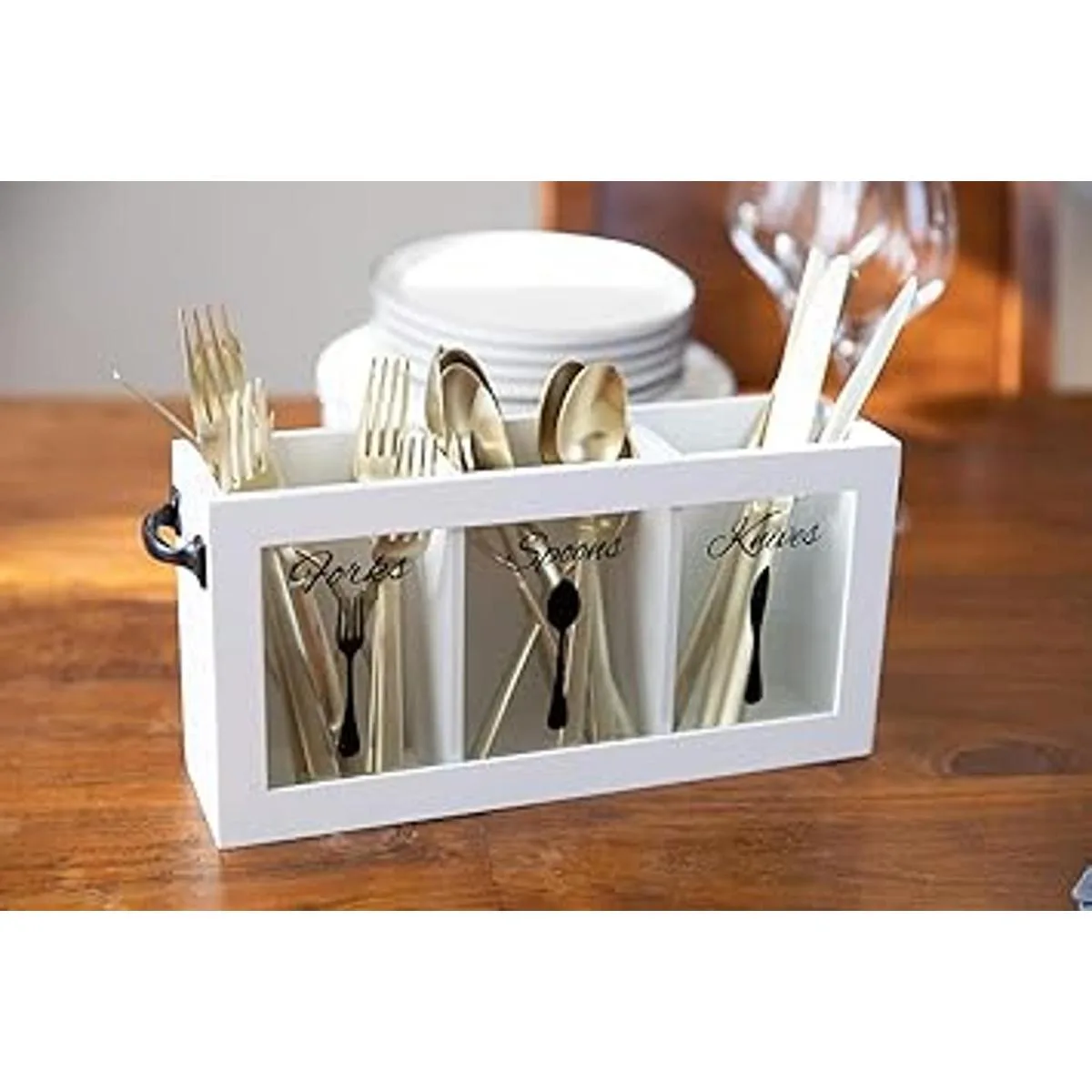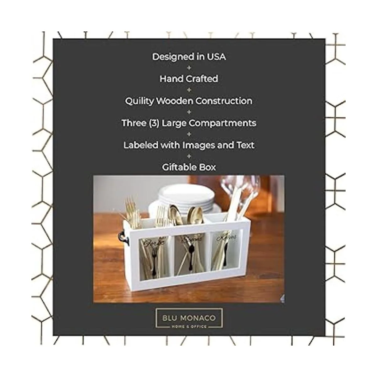 Blu Monaco Cubertería, cubiertos de madera blanca, utensilios de cocina y cubiertos organizador para tenedores, cucharas, cuchillos, perfecto para encimera de cocina