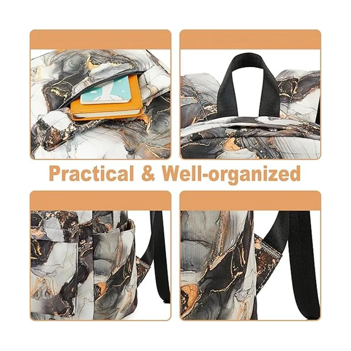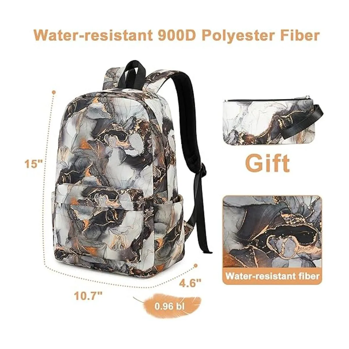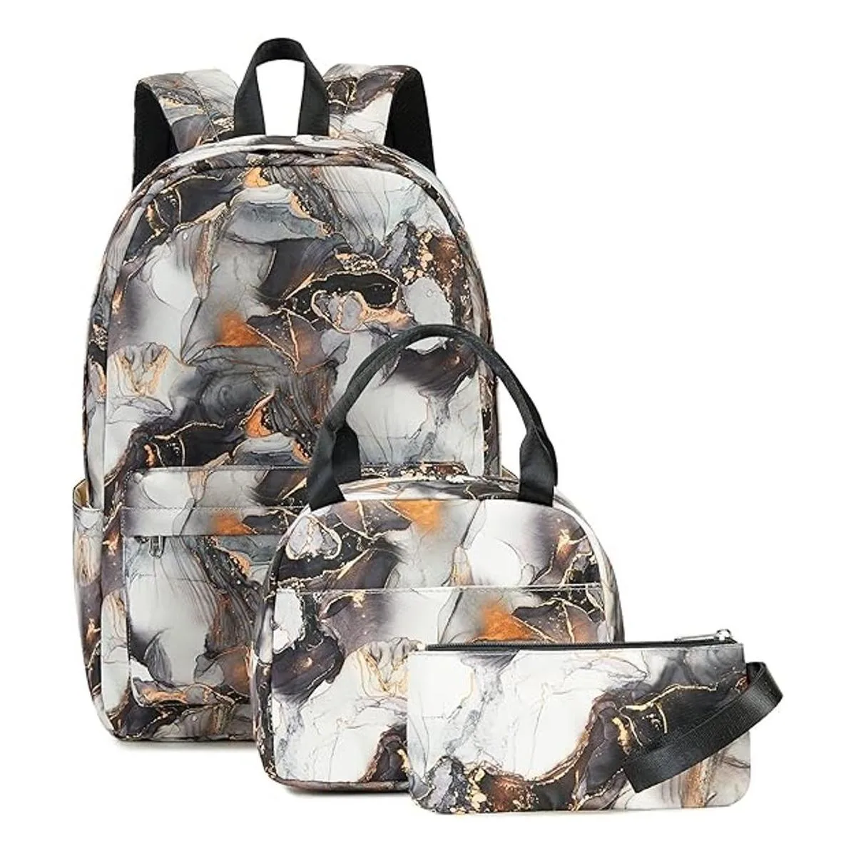 BLUBOON Mochila escolar para niñas adolescentes y niñas, juego de bolsas de libros con caja de almuerzo, estuche de lápices de viaje, mochila casual para laptop, Negro mármol