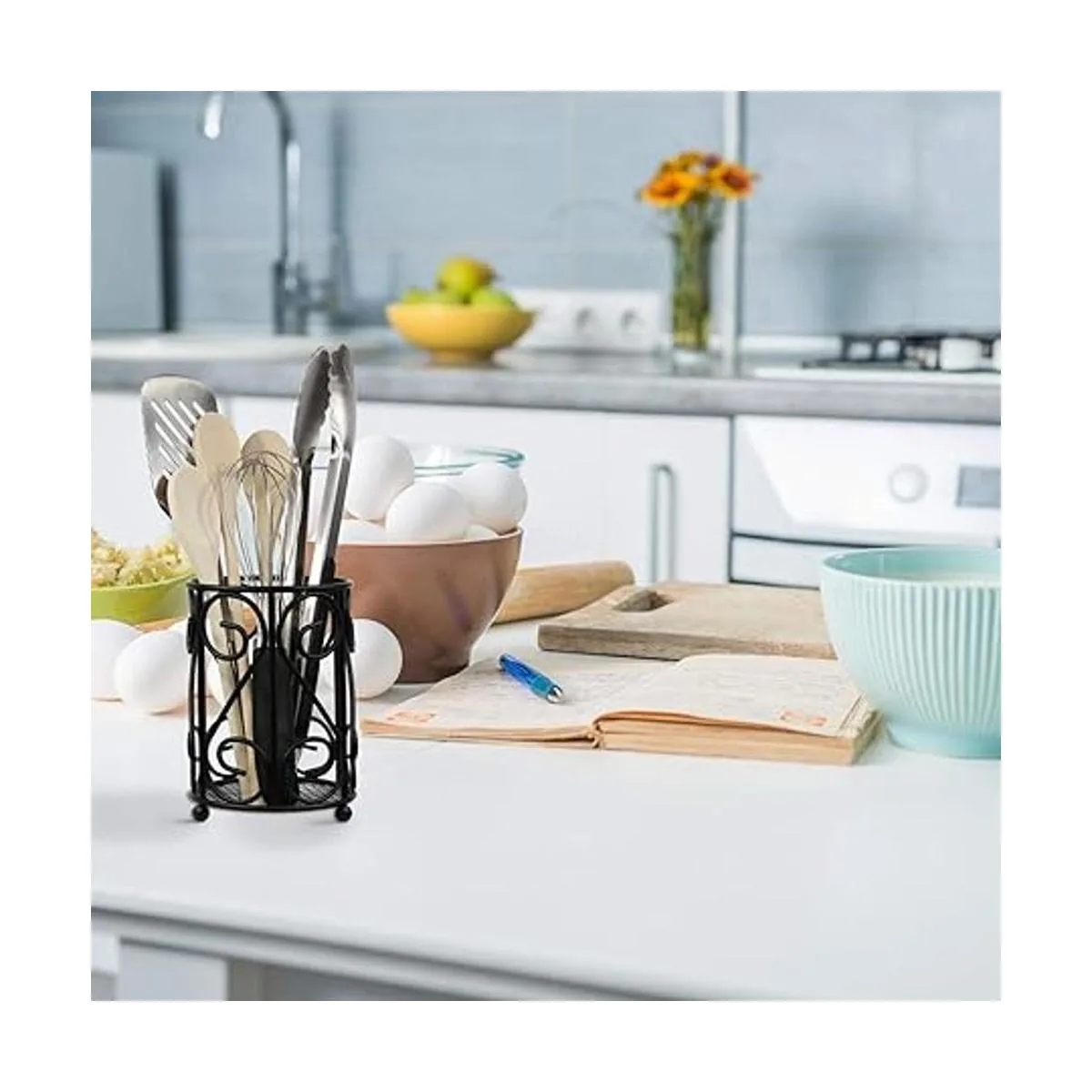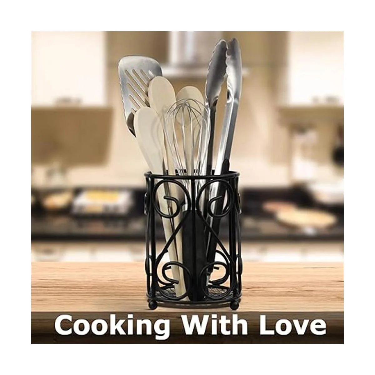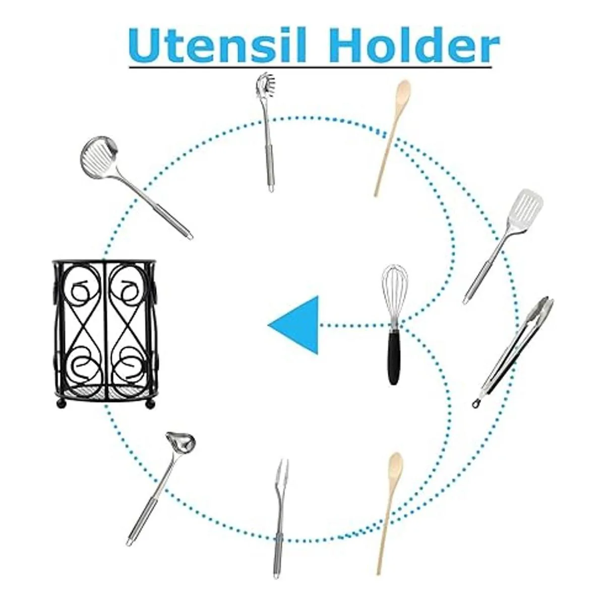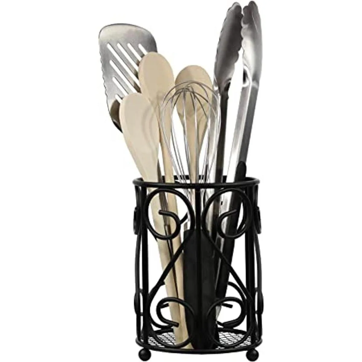 Blue Donuts Soporte para utensilios de cocina, soporte de metal vintage, organizador de encimera de cocina, soporte de utensilios de granja negro para cocina, carrito de utensilios