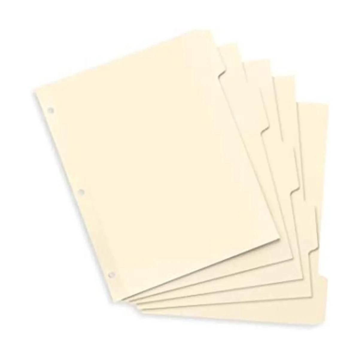 Blue Summit Supplies 3 separadores de anillas con borde reforzado, pestañas de corte 1/5, tamaño de letra, 3 agujeros de sección de perforación, divisores de índice para carpetas, Manila, 100 unidades