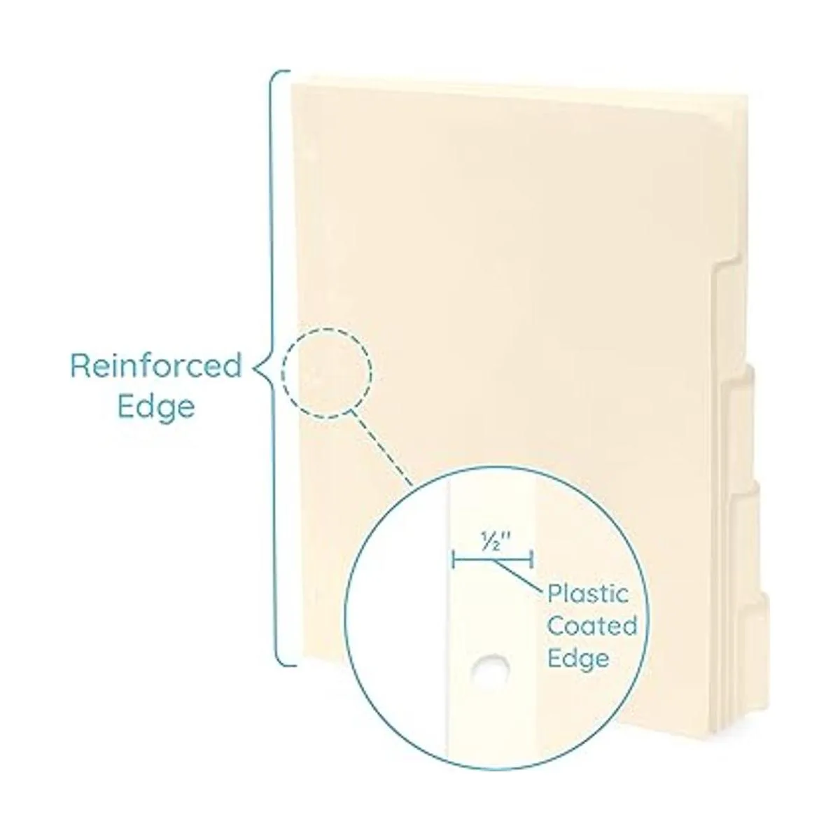 Blue Summit Supplies 3 separadores de anillas con borde reforzado, pestañas de corte 15, tamaño de letra, 3 agujeros de sección de perforación, divisores de índice para carpetas, Manila, 100 unidades