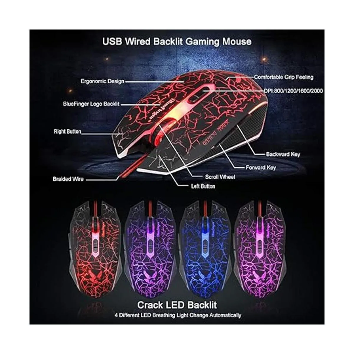 BlueFinger Combo de auriculares para teclado para juegos, teclado retroiluminado con cable USB, 114 teclas con letras brillantes, luz LED roja para laptop, computadora, trabajo y juego