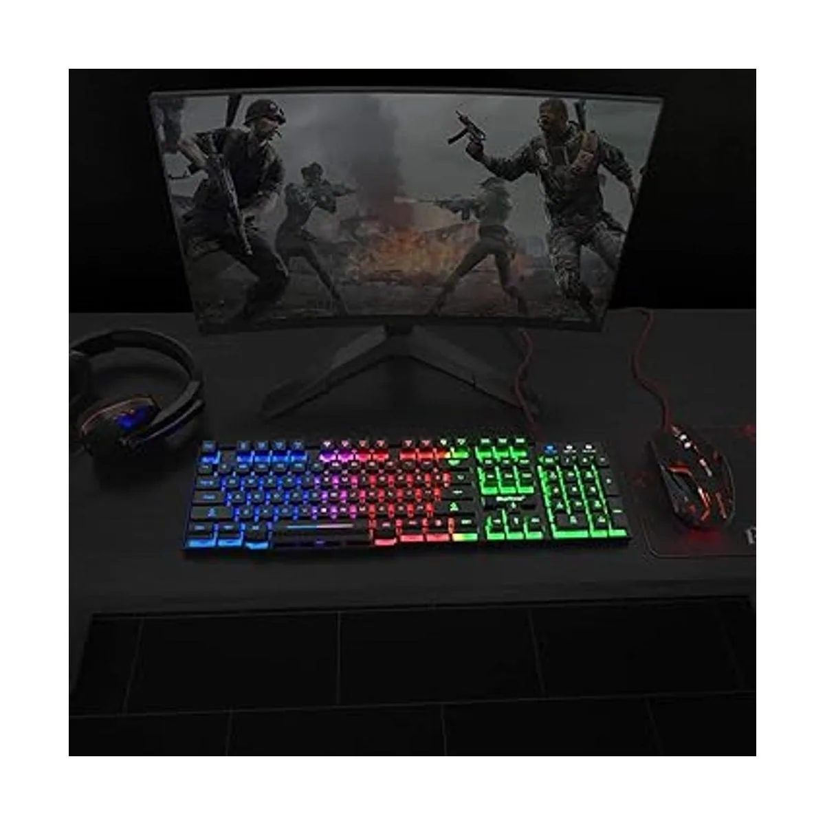 BlueFinger Teclado para juegos RGB y combo de mouse y auriculares retroiluminados, teclado retroiluminado con cable USB, juego de mouse de teclado LED para juegos, auriculares con micrófono para computadora portátil, juegos de computadora y trabajo