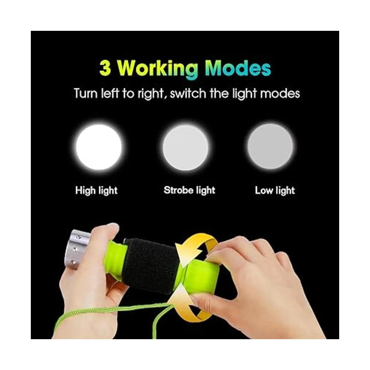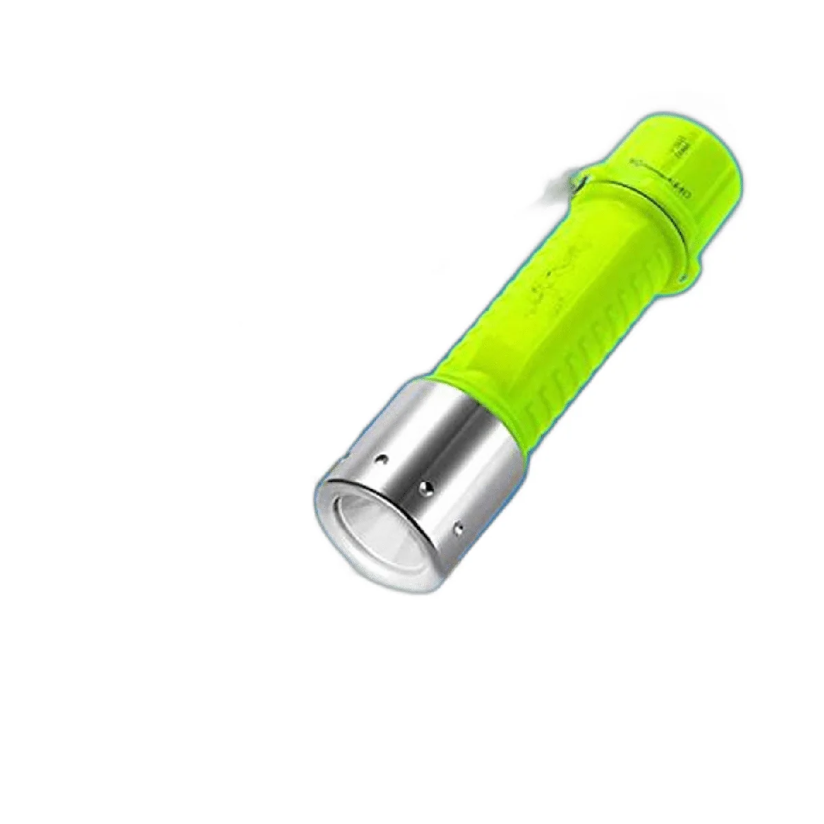 Cabeza de aleación de aluminio y diseño de cuerpo de ABS fluorescente, resistente al agua IPX8, hasta 80 pies bajo el agua.