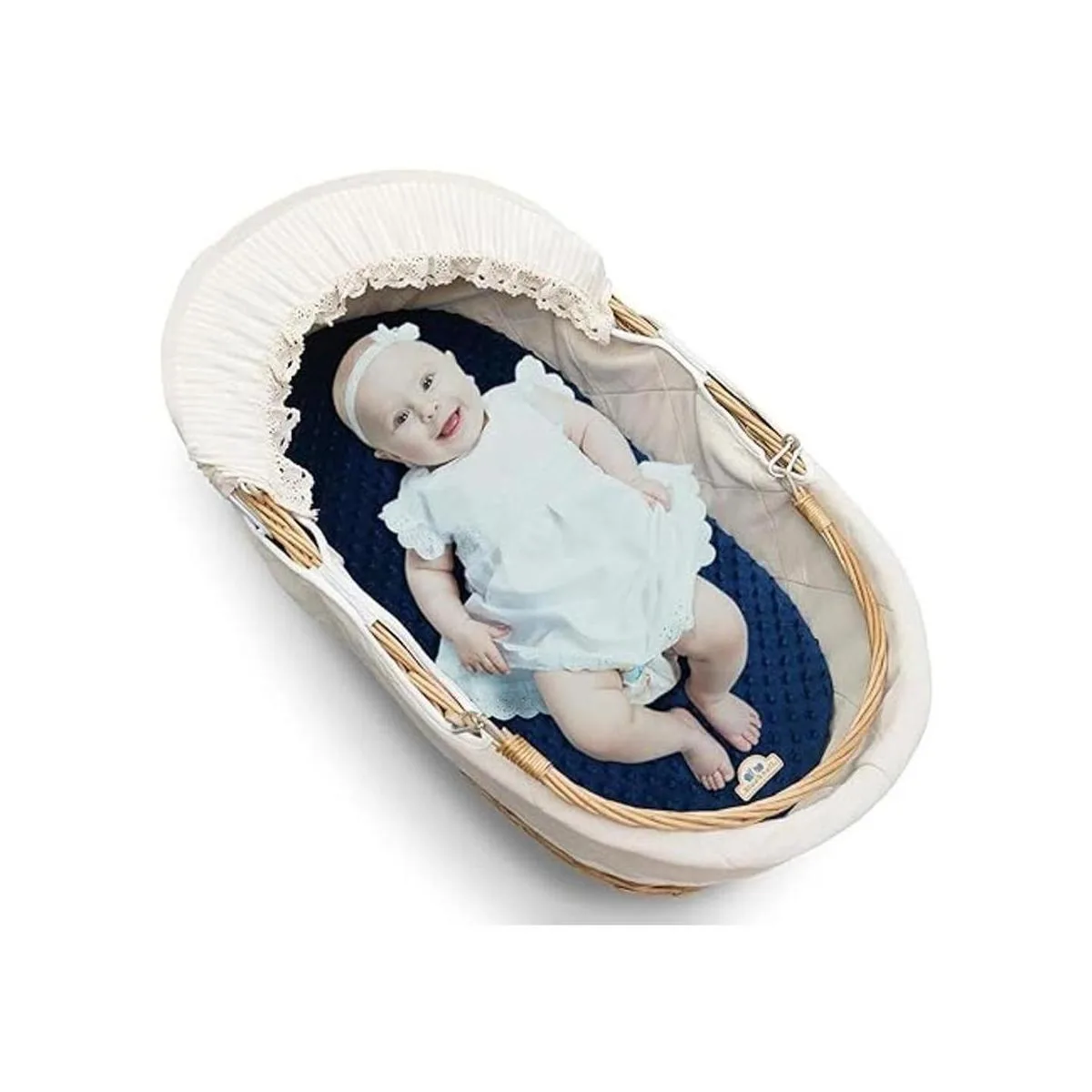 Se adapta a la mayoría de almohadillas de moisés estándar. Mide 32 x 16 x 3 pulgadas, se adapta a casi todos los colchones estándar ovalados, redondos, rectangulares, con forma de reloj de arena y junto a los que duermen.