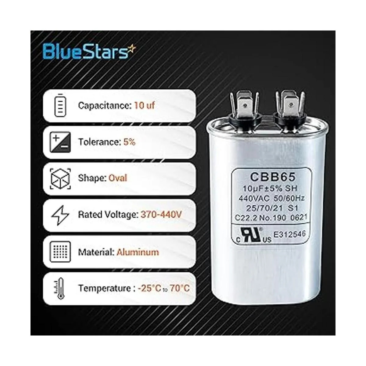 BlueStars 10 uF 5 10 MFD 370440V CBB65 Pieza de repuesto para condensador de arranque ovalado de arranque de motor de CA o arranque de ventilador y aire acondicionado de bomba de calor Sustituye a 27L669 97F9002