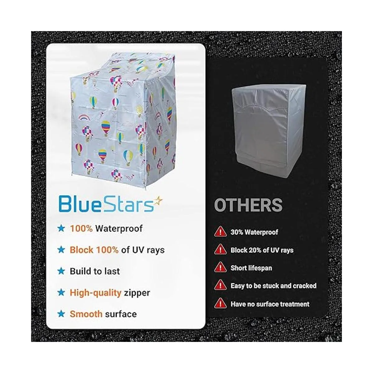 Protege la lavadora/secadora: la funda para lavadora/secadora Bluestars para la máquina de carga superior protegerá tu lavadora del polvo, el agua o el sol si mantienes tu lavadora en un balcón o cualquier otra zona. La funda está hecha de tela de poliéster de alta calidad y resistente con un revestimiento impermeable y resistente al sol que mantiene tu máquina lejos de decoloración, pintura u óxido.