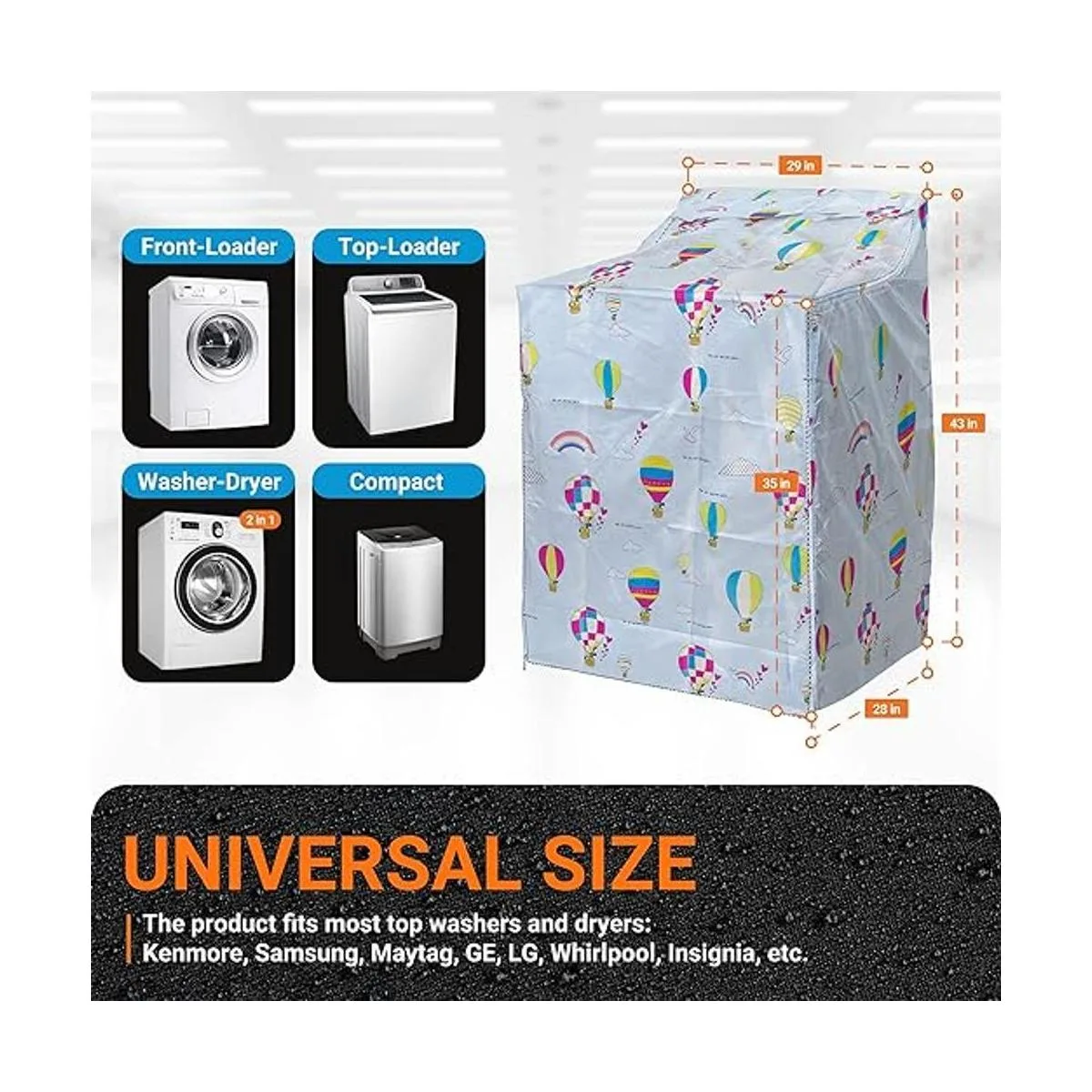 Para máquinas de carga superior: nuestra funda es adecuada para la mayoría de máquinas de carga superior como Kenmore, Samsung, Maytag, GE, LG, Whirlpool, Insignia, etc. Mide primero tu lavadora/secadora para garantizar el tamaño correcto de la cubierta.