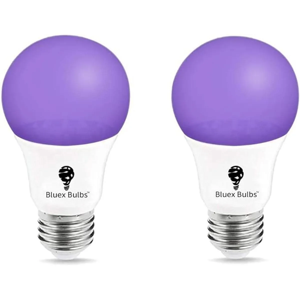 Bluex Bulbs Paquete de 2 bombillas LED negras, 9 W A19 E26 nivel de bombilla negra 385400 nm, pintura corporal, bombilla LED que brilla en la oscuridad, bombilla fluorescente neón brillante paquete de 2