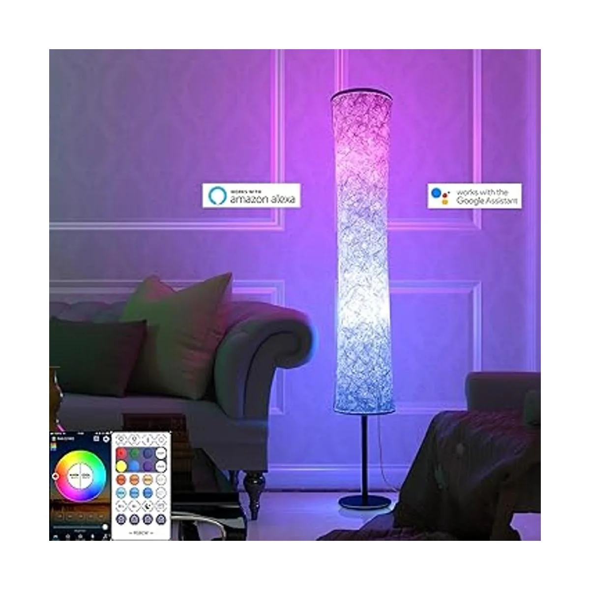 BLUEYE Lámpara de pie, RGBCW 2700K6500K, aplicación y control remoto y de voz inteligente, equivalente a 2 x 60 W, no requiere concentrador, compatible con Alexa Google Assistant, lámpara de pie de 60 pulgadas para dormitorio, tela similar