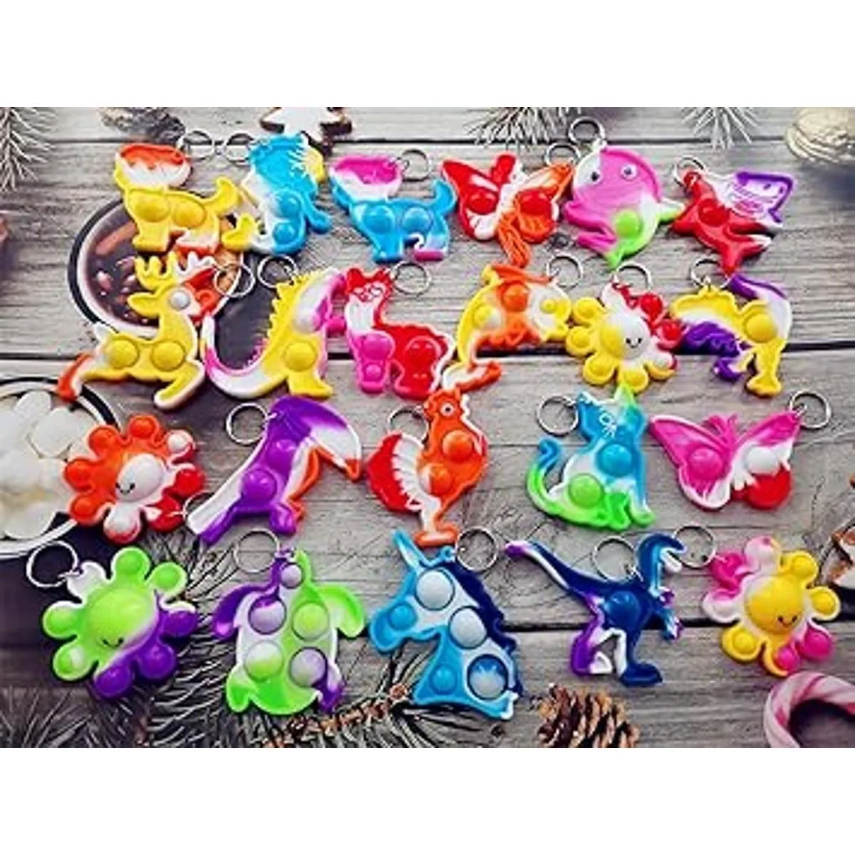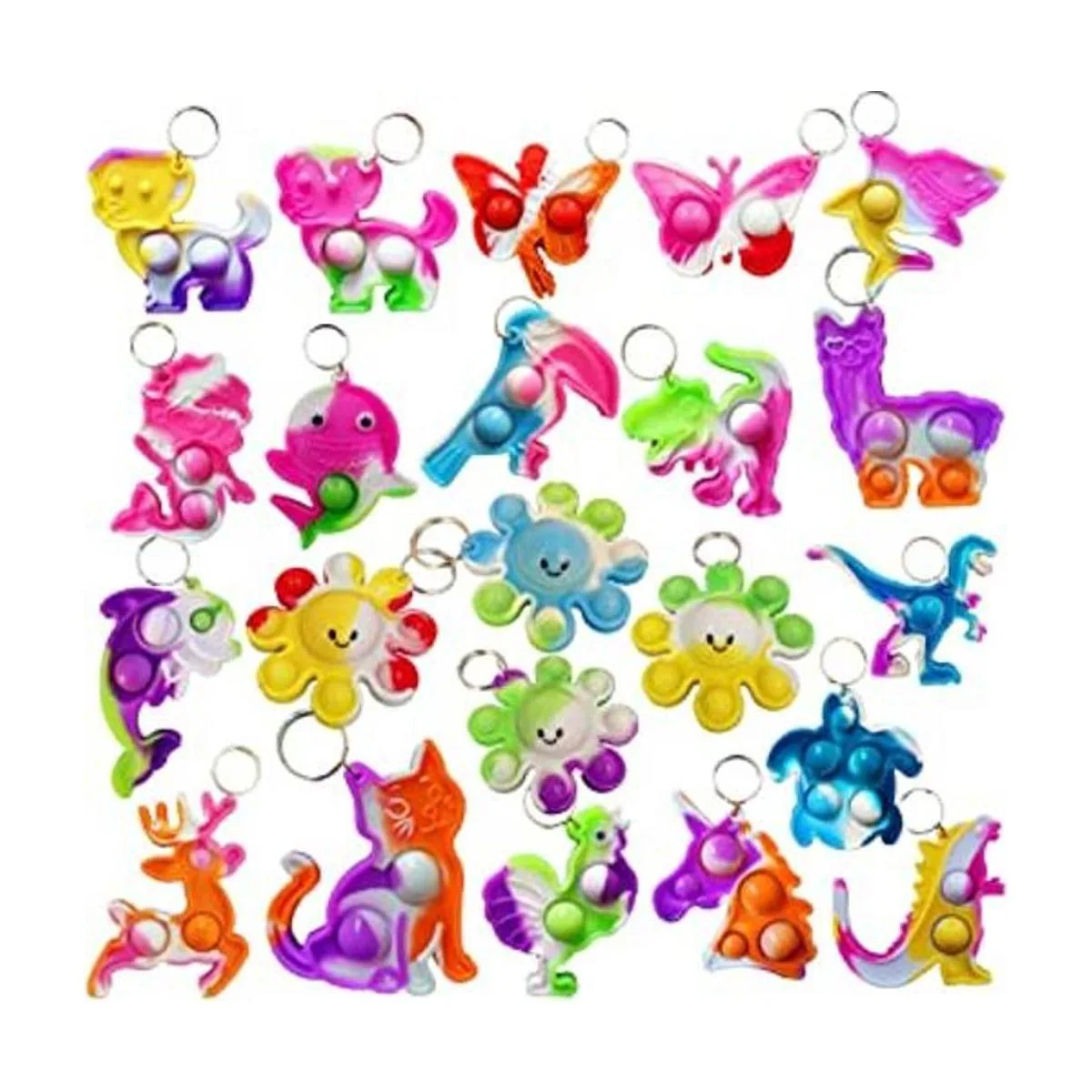 Bluk Pequeños juguetes sensoriales antiestrés con diseño de arco iris, miniherramientas sensoriales con burbujas emergentes simples, colgantes para decoración de mochilas paquete de 24 unidades