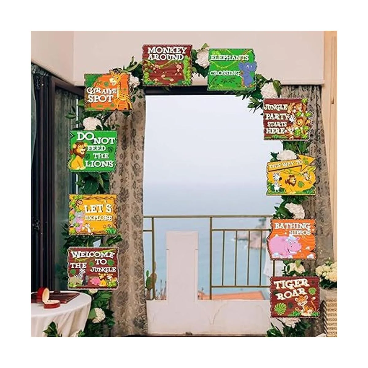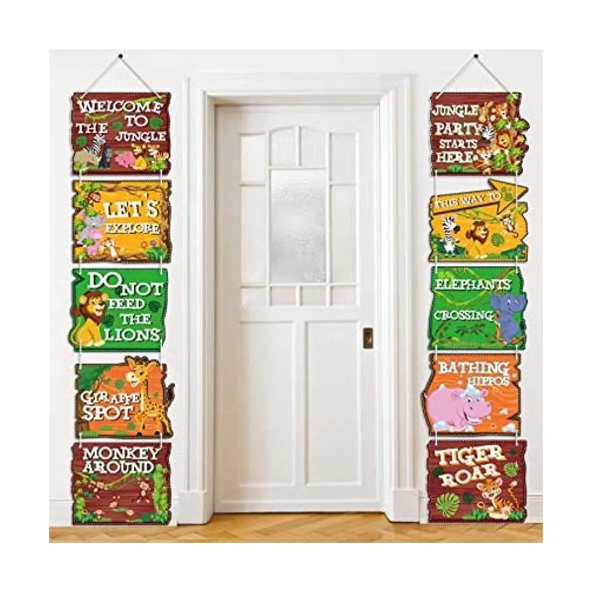 Blulu 10 letreros de fiesta de animales de la selva, animales salvajes, letrero de bienvenida para puerta de zoológico, recortes para fiestas temáticas, fiestas de cumpleaños, suministros de baby shower