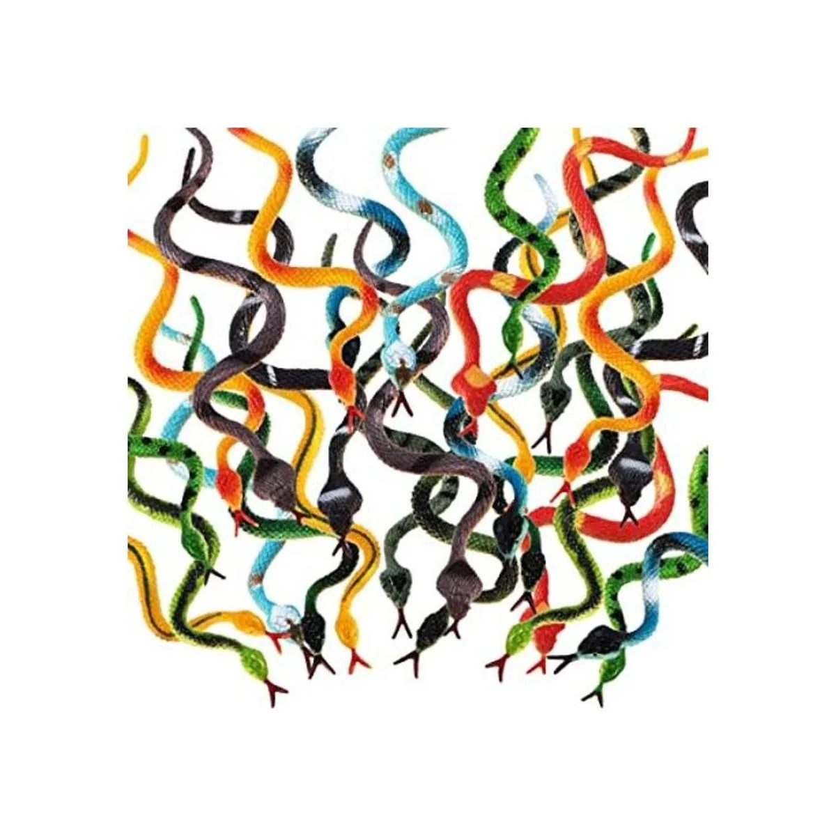 Paquete: recibirás 24 serpientes falsas de plástico con patrones mixtos, diferentes estilos son ligeramente diferentes en tamaño, la medida es de aproximadamente 4.1 4.7 in de longitud no estirada