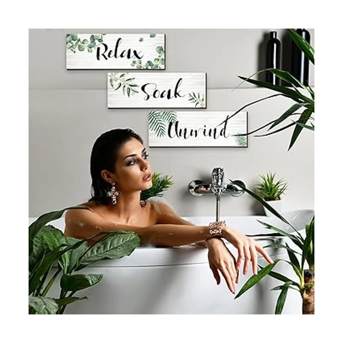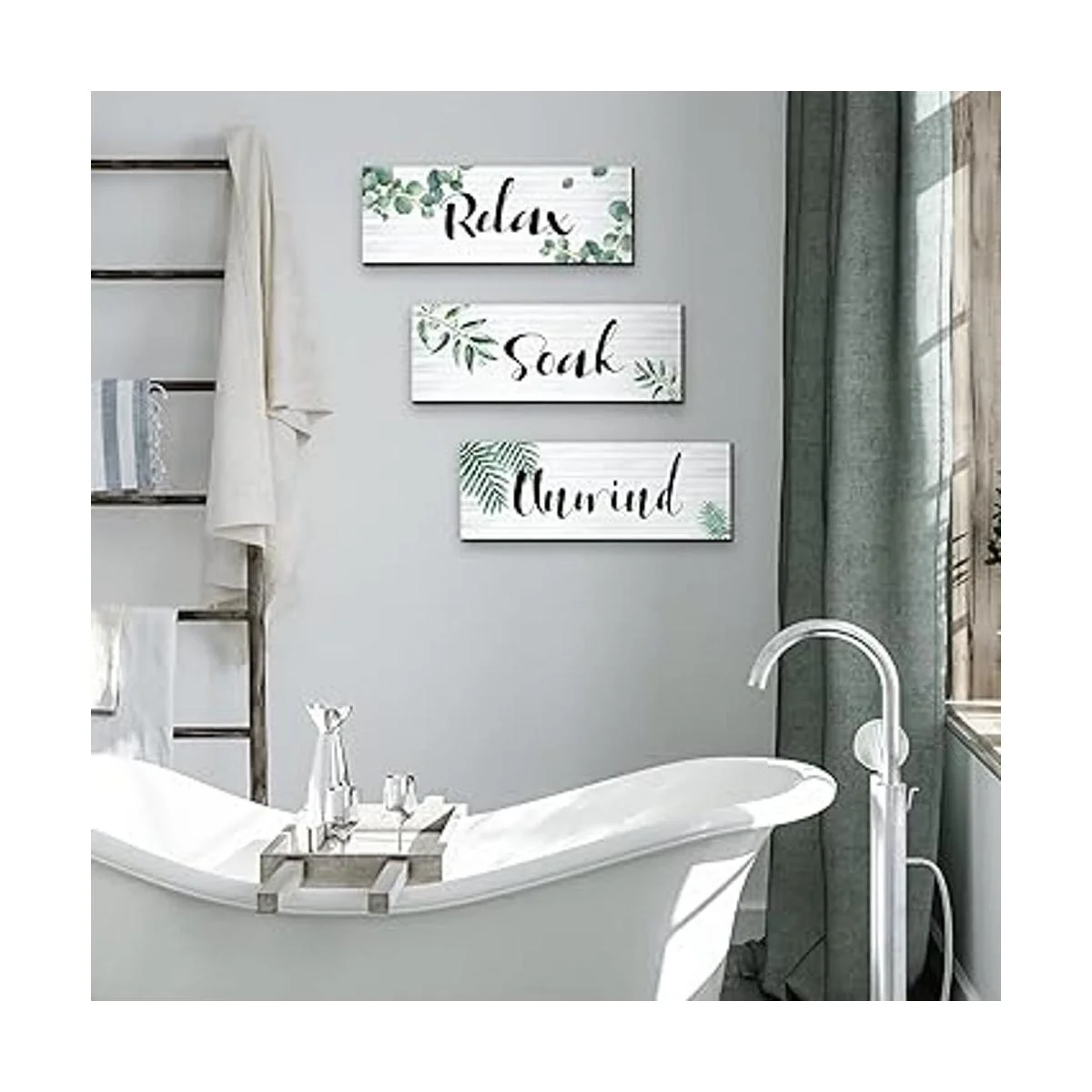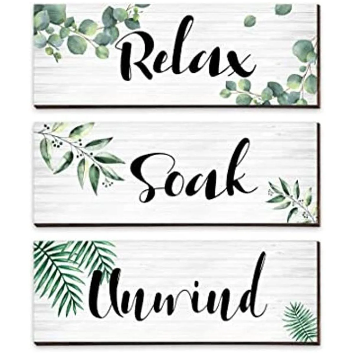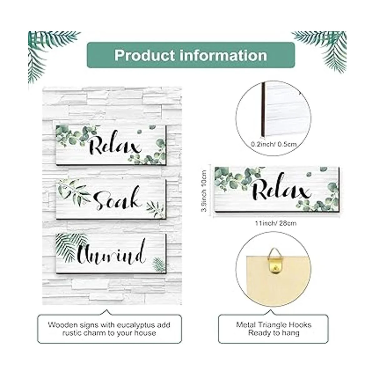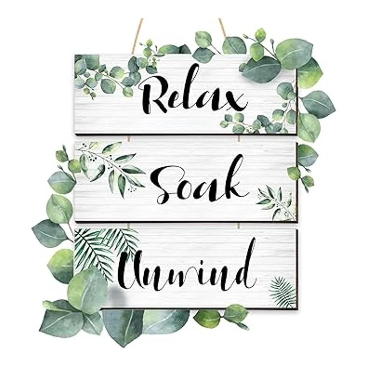 Renueva tu espacio: nuestros letreros de pared de baño de eucalipto irrompibles cuentan con relajar, remojar, relajar, letras y hojas botánicas, eficientes para añadir un toque fresco y relajante a tu espacio, adecuados para baño, dormitorio, oficina, etc