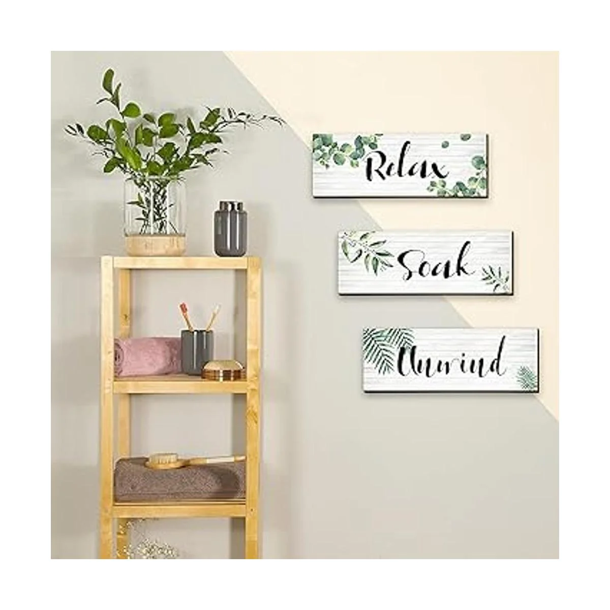 Blulu 3 piezas de decoración de pared de baño, diseño de hojas verdes botánicas, decoración de pared de baño, decoración rústica de pared, 3 piezas, 11 x 3.9 x 0.2 pulgadas