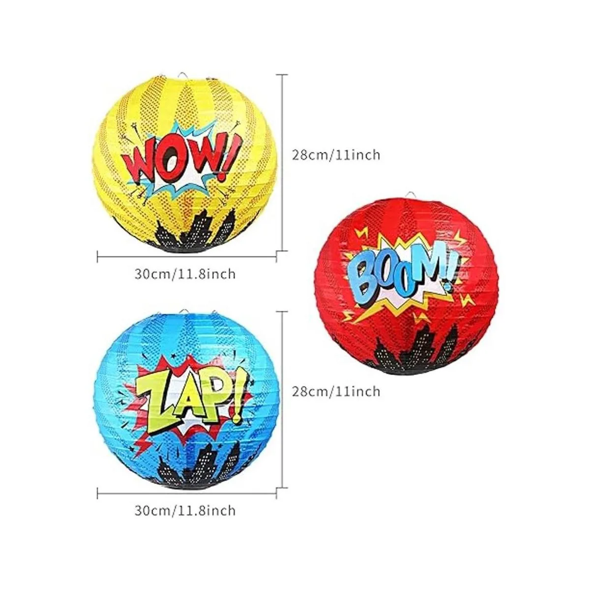 Blulu 6 faroles de papel colgantes para fiestas de cumpleaños de cómics, decoraciones temáticas de fiesta de cumpleaños para niños, decoraciones de fiesta de cumpleaños