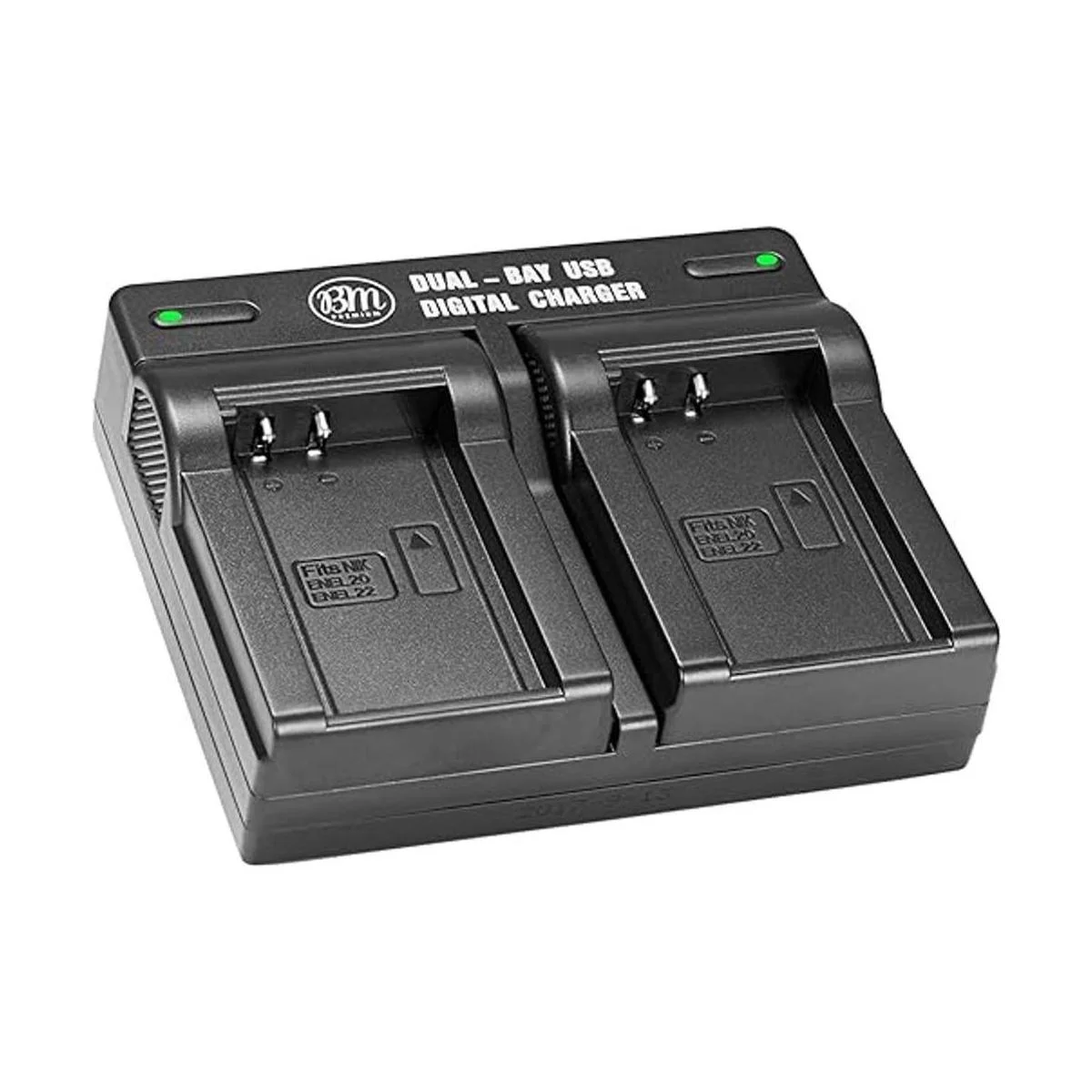 BM Premium ENEL20, ENEL20A Cargador de batería dual para cámaras digitales Coolpix P950, P1000, Nikon DL24500, Coolpix A, 1 J1, 1 J2, 1 J3, 1 S1, 1 V3 MH27 de repuesto