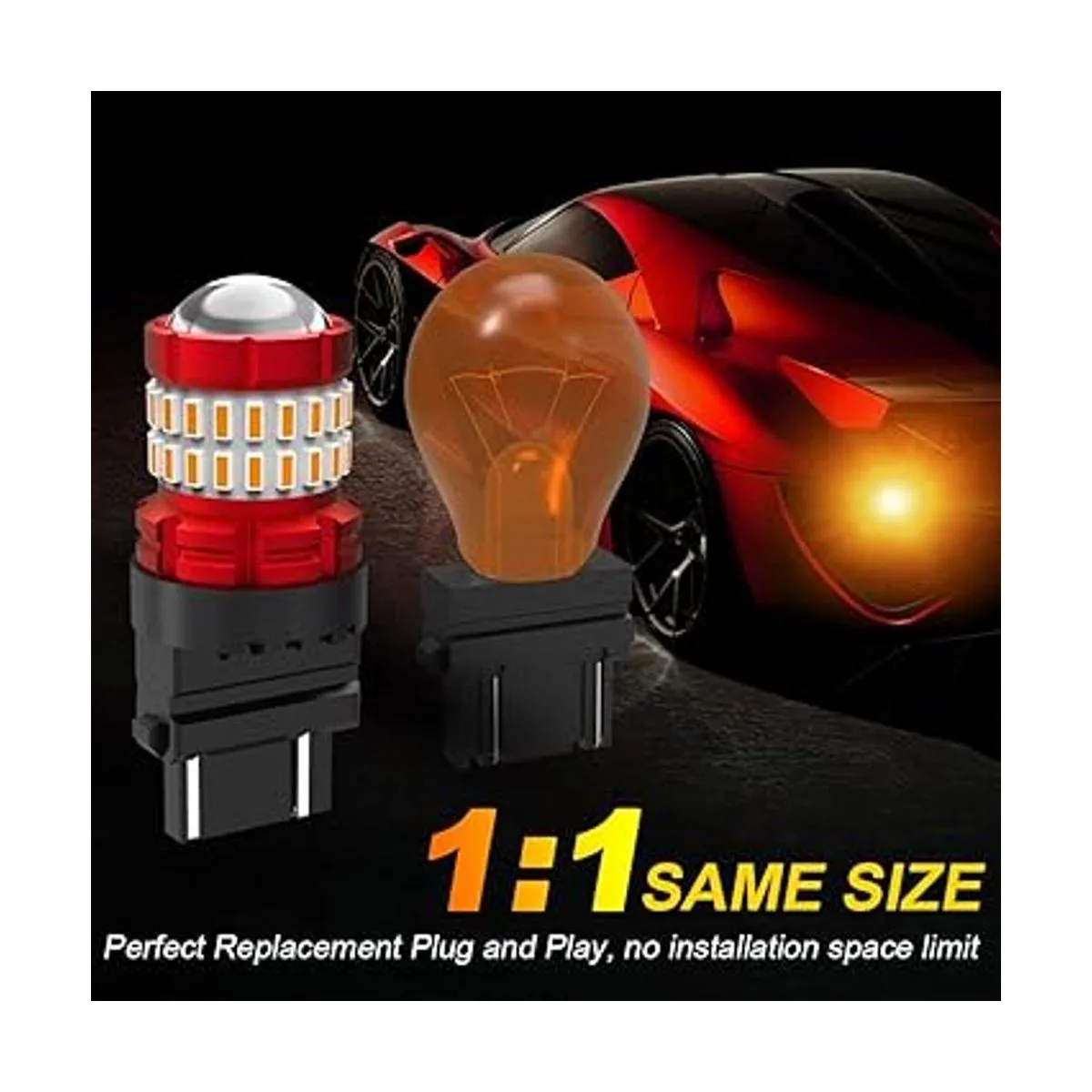 Alto brillo: cada bombilla tiene 44 chips LED 3030 de alta potencia, amarillo ámbar, 1200 lm por bombilla, 2400 lm por juego, 400 más brillante que las bombillas halógenas.