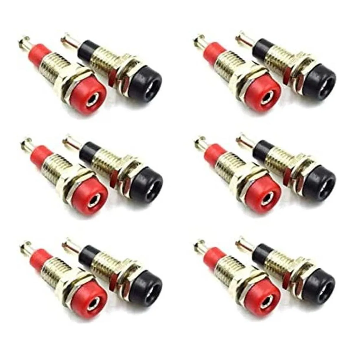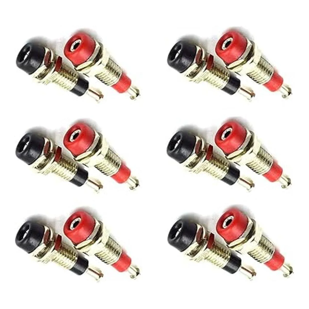 bnafes Conector hembra de 0.079 in de aleación de poste extendido, conector banana jack de 0.079 in, color negro y rojo, paquete de 12