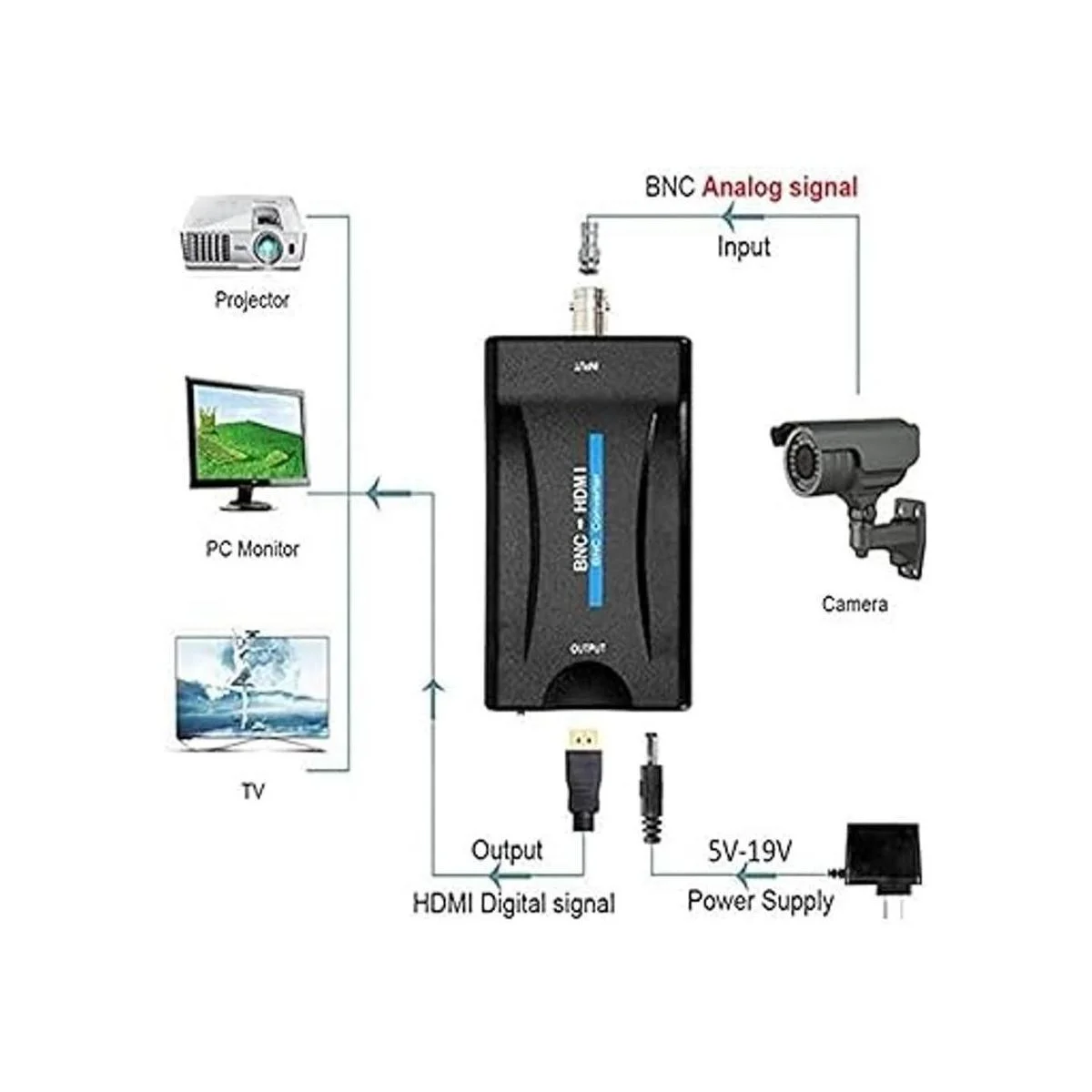 Señales analógicas BNC a señales HDMI. Con puerto de audio para entrada de señales audibles. Solo funciona para cámara analógica. No puede convertir la señal de TV por cable, no puede convertir la cámara digital o la cámara AHD/TVI/CVI, solo para cámara analógica. Antes de comprar, comprueba que tu dispositivo es una cámara analógica.