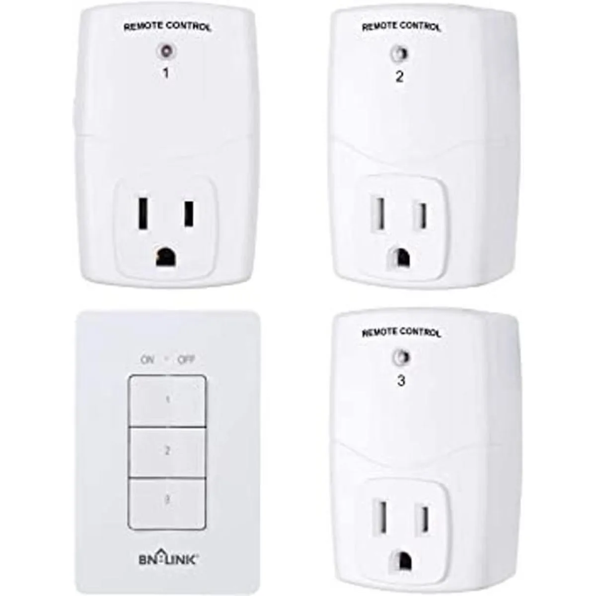 BNLINK Mini interruptor de toma de corriente inalámbrico para montaje en pared, interruptor de toma de corriente para electrodomésticos, interruptor de luz remoto inalámbrico, bombillas LED, blanco 3 tomas
