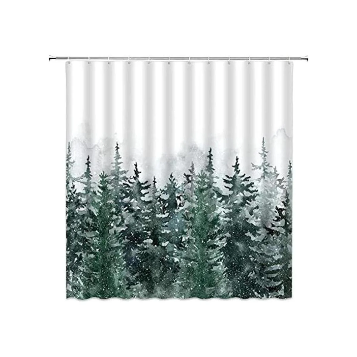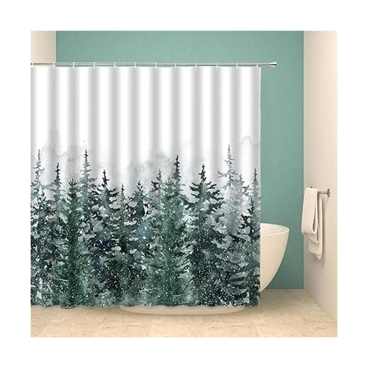 1. Cortina de ducha de bosque de invierno. Material y tamaño: tela de poliéster de alta calidad, incluye ganchos de plástico C, una variedad de tamaños para satisfacer tus necesidades.