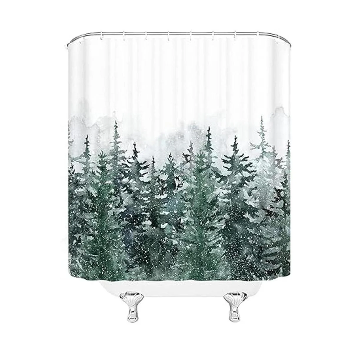 2. Cortinas de ducha de pinos de bosque brumoso, lavables a máquina. Lavar a mano o a máquina, lavar en agua fría, lavar por separado y colgar para secar. Se recomienda colores vibrantes, imagen clara, lo que hace que tu baño sea brillante y elegante.