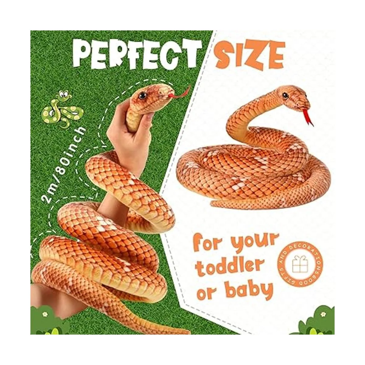 Boa Constrictor gigante grande de peluche serpiente gigante de felpa realista de serpiente de 80 pulgadas, regalos de serpiente realista para niños, fiesta de cumpleaños, bromas marrón