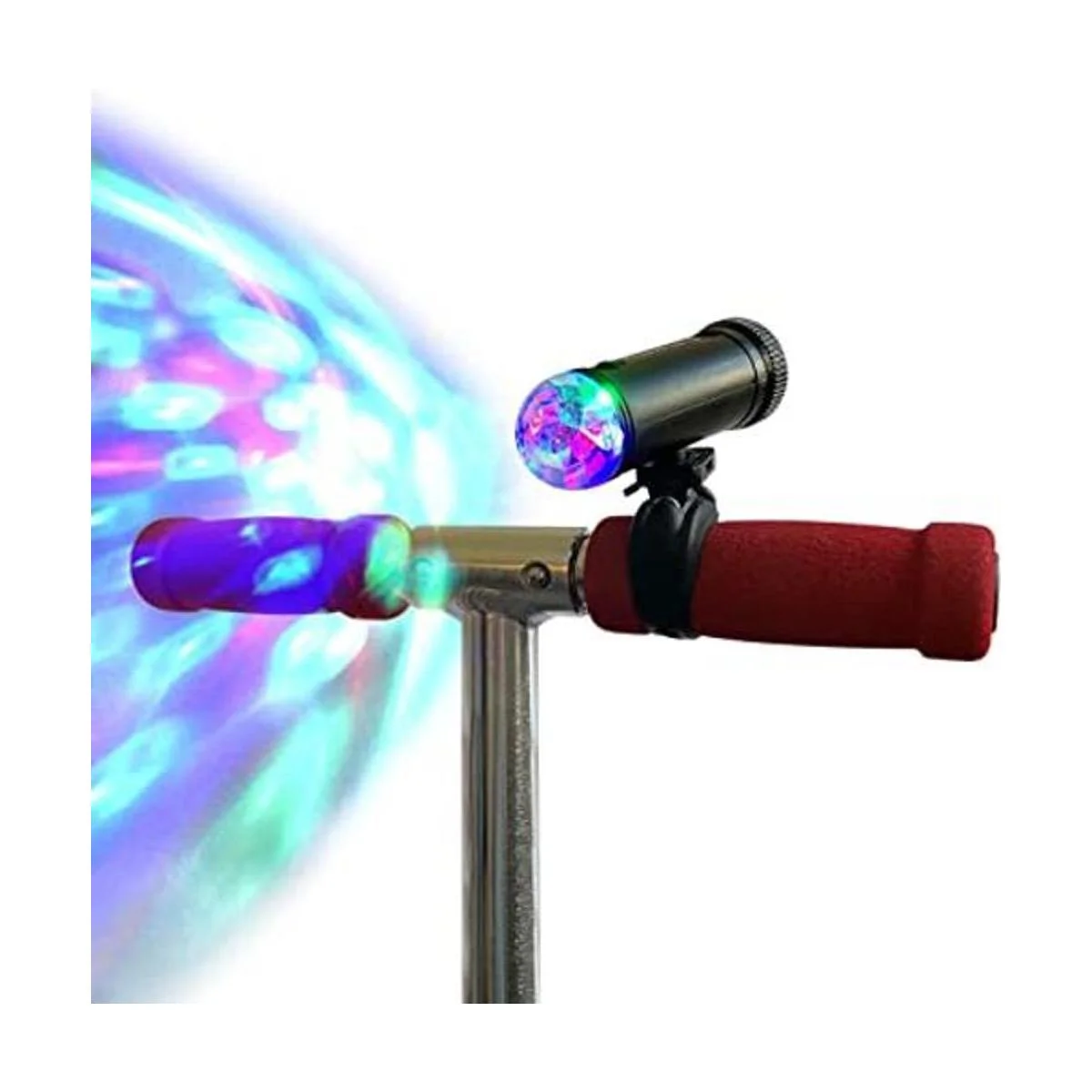 Fácil de montar, no requiere herramientas, simplemente envuelve el mango del scooter y enciéndelo Este es el accesorio perfecto para micro scooter o calcetín de Navidad único para niños Pilas no incluidas.