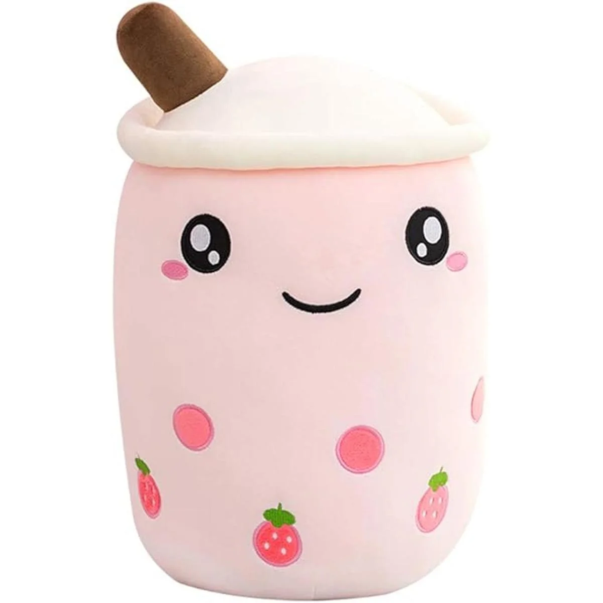 Boba Almohada de peluche de 13.7 pulgadas, regalo de almohada para abrazar fresa rosa
