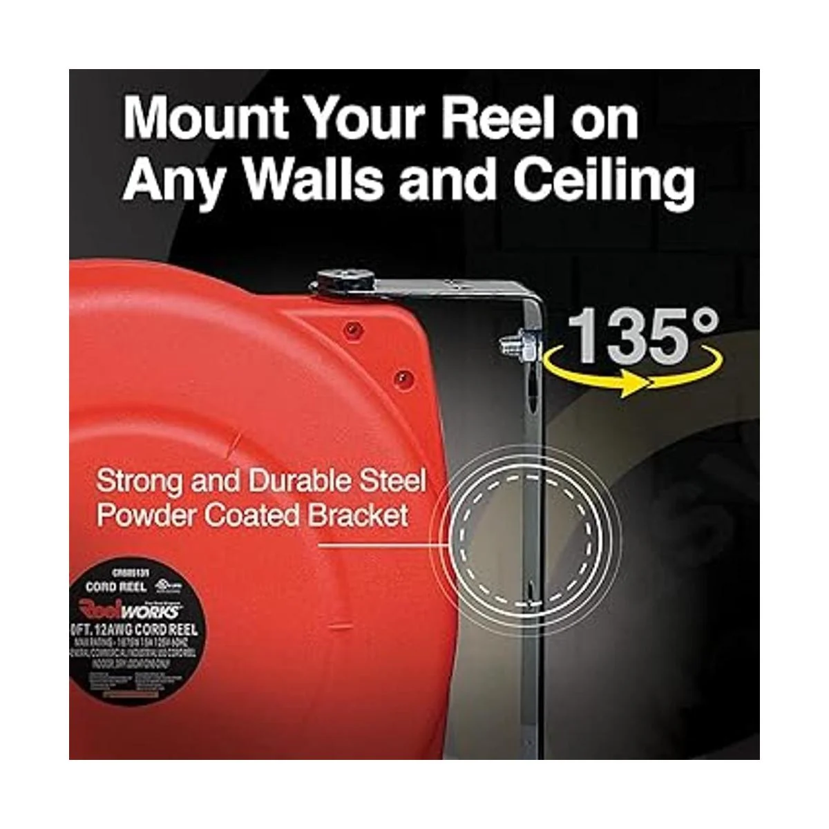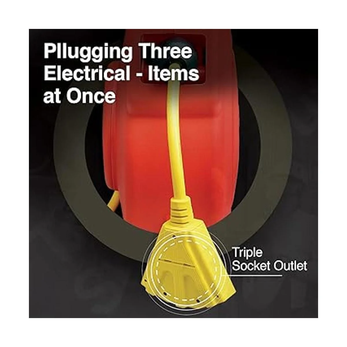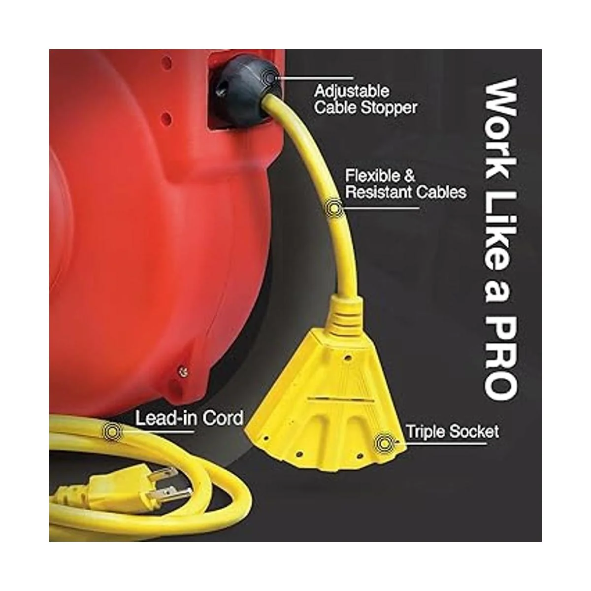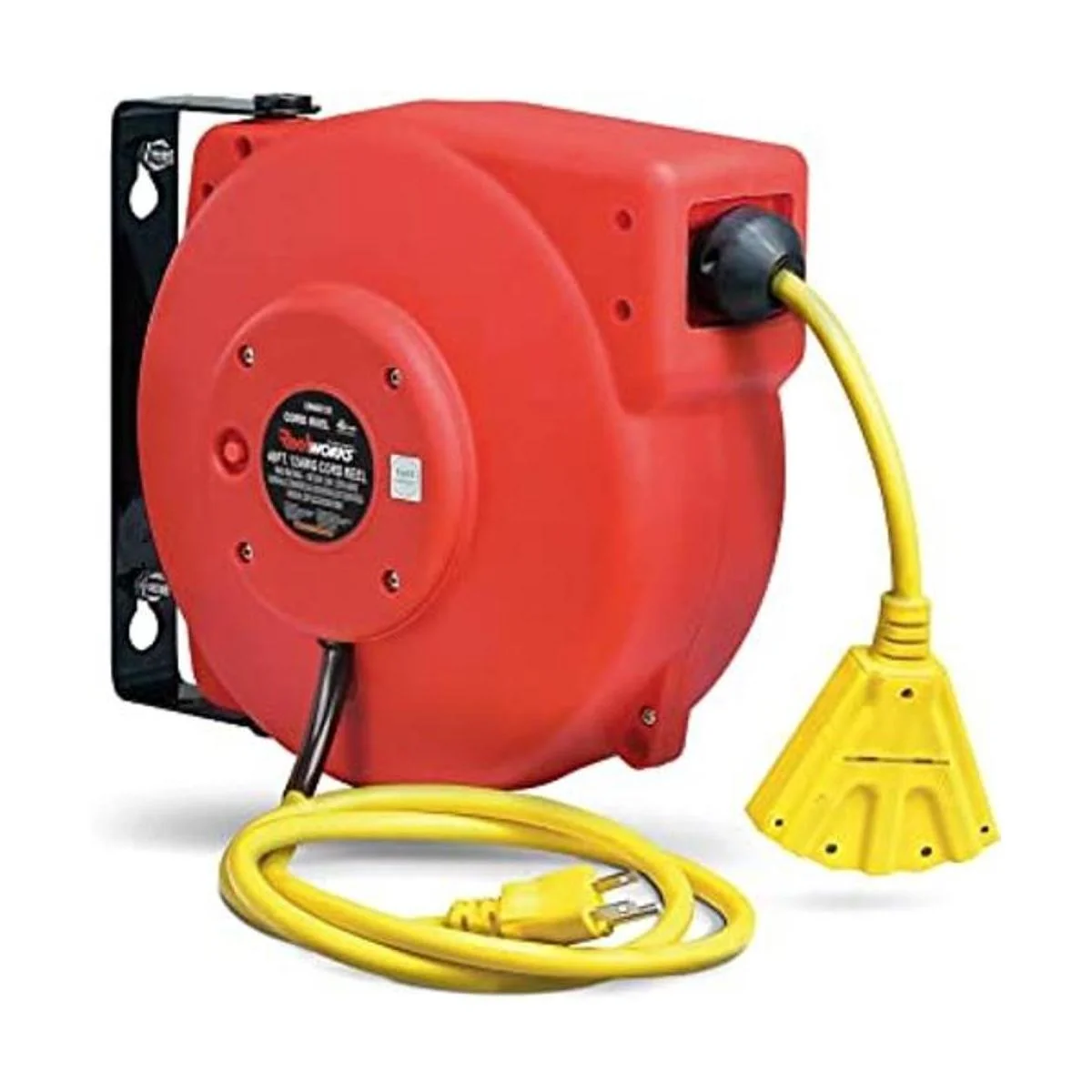 Bobina de cable de extensión de servicio pesado Reelworks CR605131S3A, 12 AWG3 C SJT, triple grifo, 40 pies