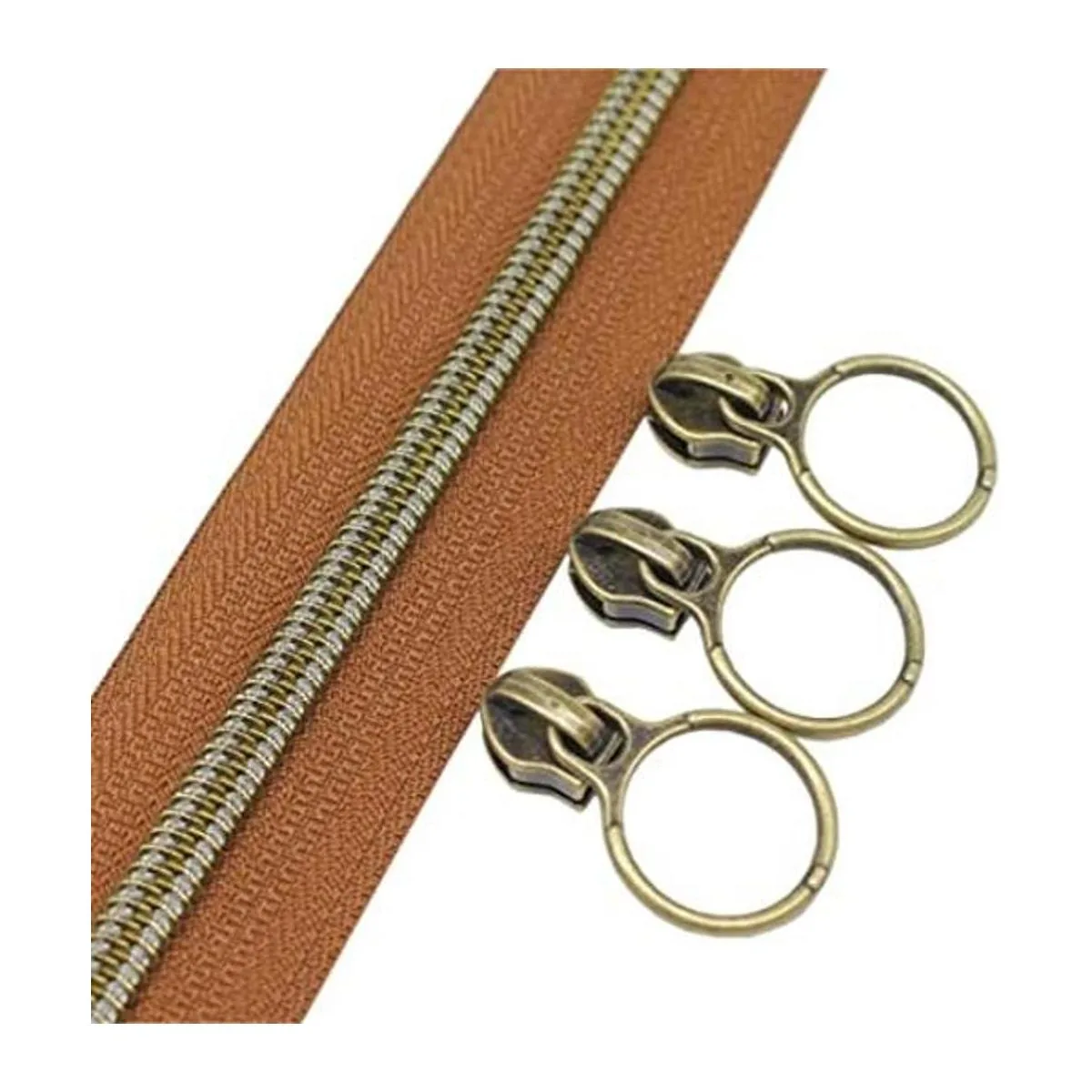 5 antique brass teeth Nylon Coil Zippers By The Yard Bulk for DIY Sewing Tailor