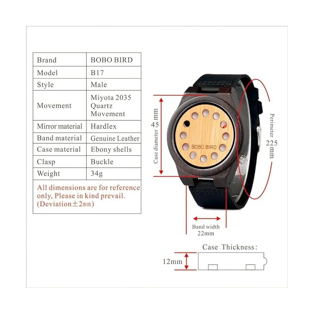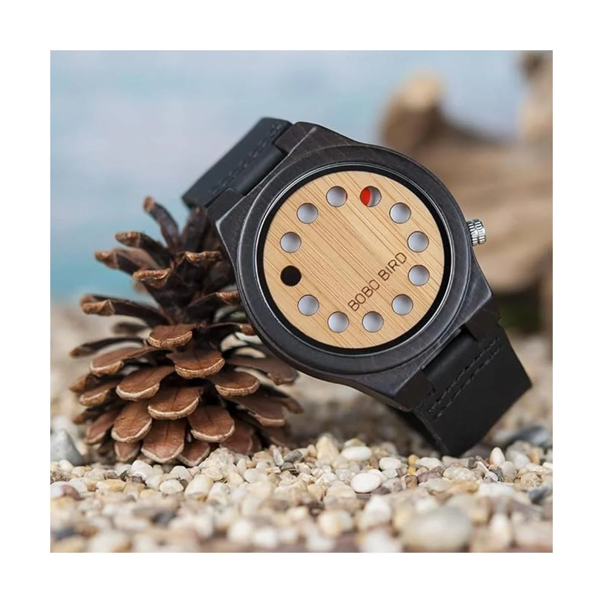 4. Correa de madera ajustable: el reloj BOBO BIRD tiene correas de bambú flexibles que se expanden hasta 8.5. Puedes lograr un ajuste personalizado si ajustas los pasadores atornillados en una joyería o tienda local de reparación de relojes.