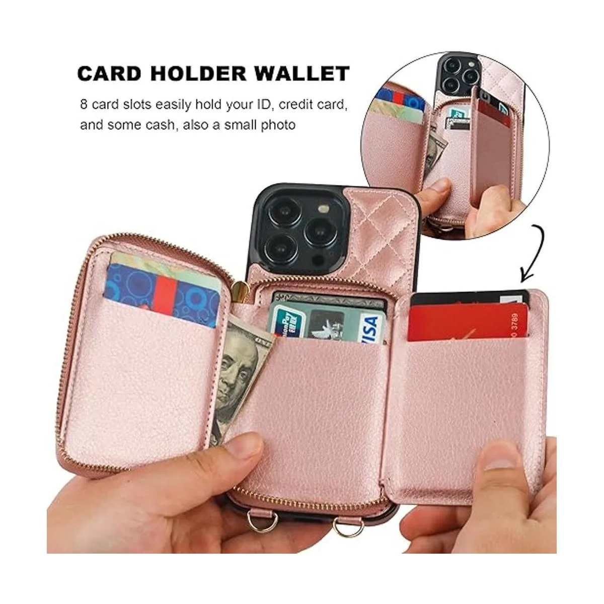 Funda tipo cartera de gran capacidad: esta cartera está equipada con muchas ranuras para tarjetas, así como un bolsillo para dinero en efectivo para el almacenamiento de poco dinero y varias tarjetas como tarjetas de identificación, tarjetas de débito, licencia de conducir, etc. Además, la cremallera en la cartera cruzada puede garantizar la seguridad de tus pertenencias.