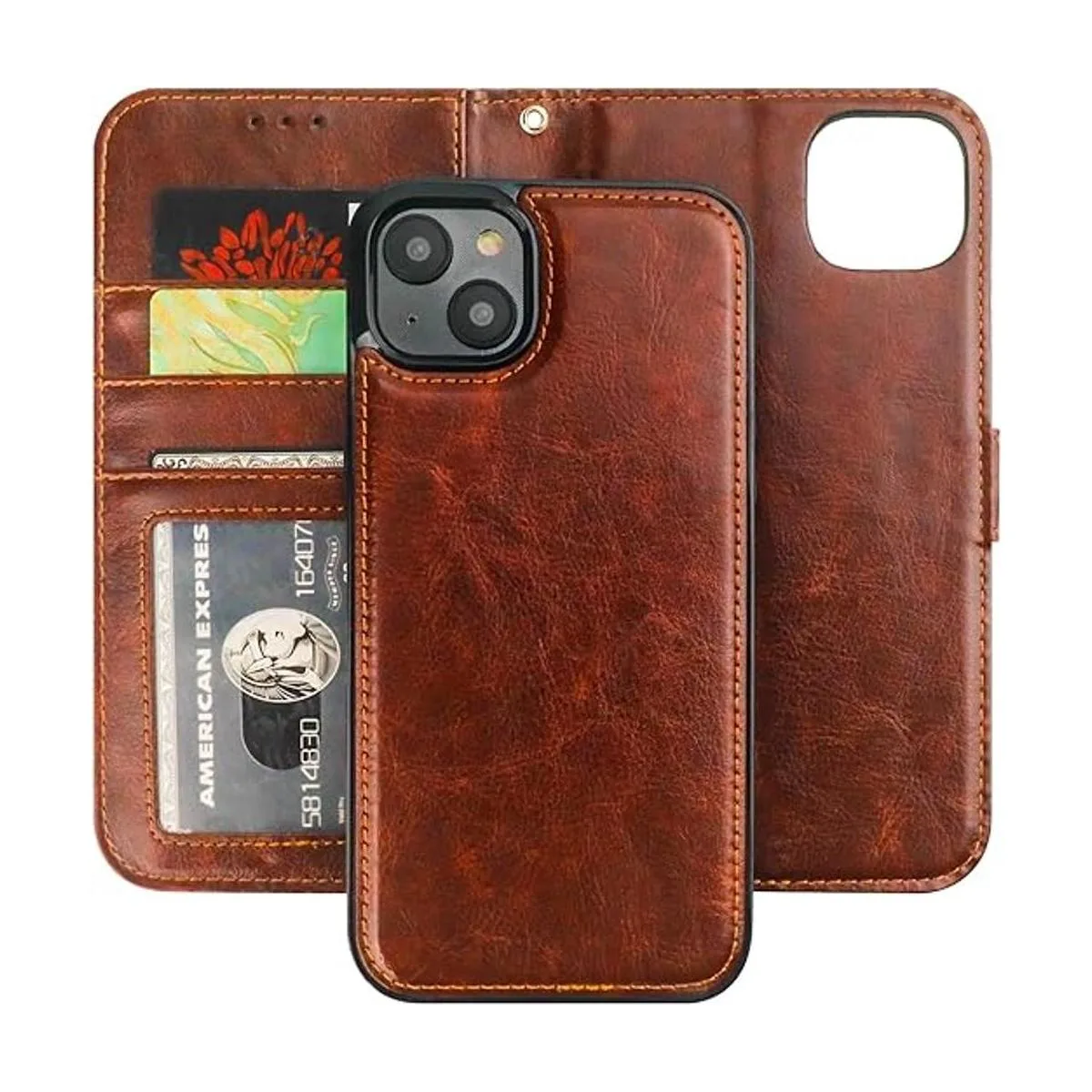 Bocasal Funda tipo cartera desmontable para iPhone 14 Plus con bloqueo RFID, ranuras para tarjetas, soporte magnético de piel sintética de alta calidad, a prueba de golpes, correa de muñeca extraíble 5G de 6.7 pulgadas marrón