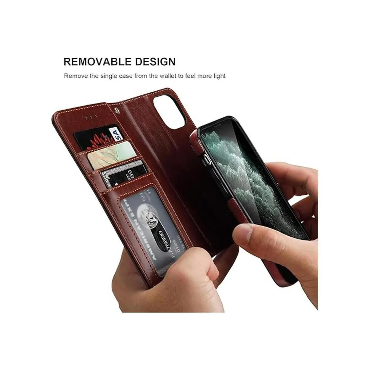 Bocasal Funda tipo cartera para iPhone 11 Pro con tarjetero de piel sintética, magnética, desmontable, a prueba de golpes, correa de muñeca extraíble con tapa para iPhone 11 Pro de 5.8 pulgadas marrón