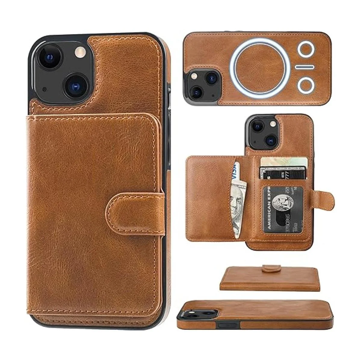 Bocasal Funda tipo cartera para iPhone 13 compatible con MagSafe Magnetic RFID Bloqueo desmontable, funda de piel sintética de alta calidad con ranuras para tarjetas, soporte de carga inalámbrica de 6.1 pulgadas marrón