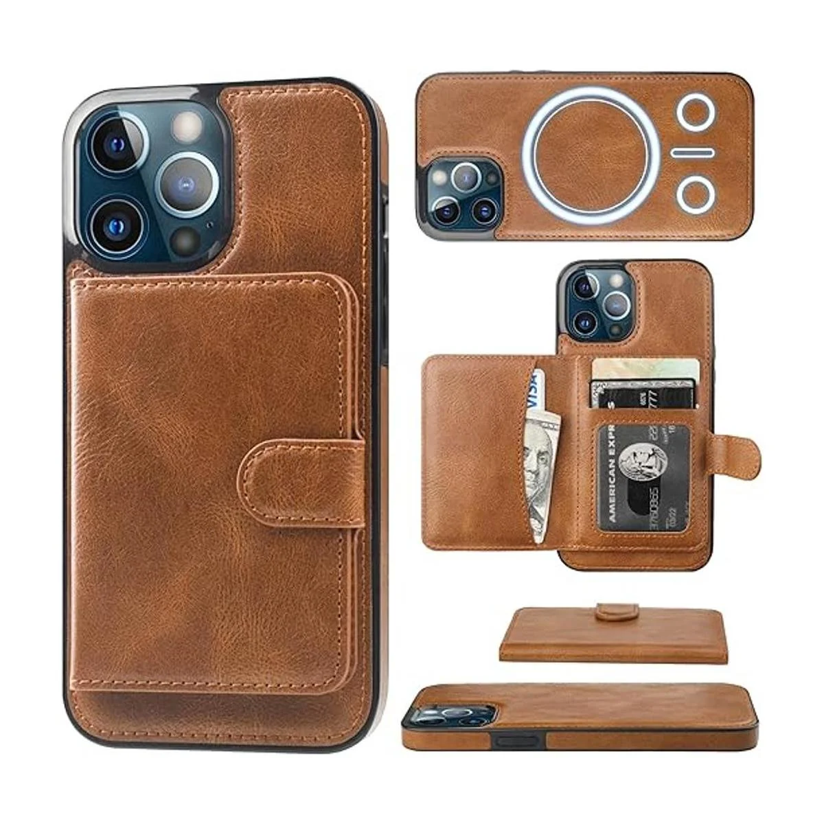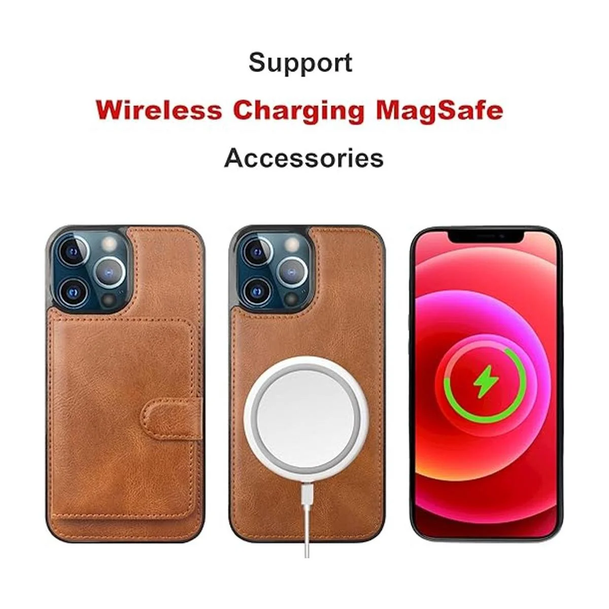 Bocasal Funda tipo cartera para iPhone 13 Pro Max compatible con MagSafe Magnetic RFID Bloqueo desmontable, funda de piel sintética de alta calidad con ranuras para tarjetas, soporte de carga inalámbrica de 6.7 pulgadas marrón