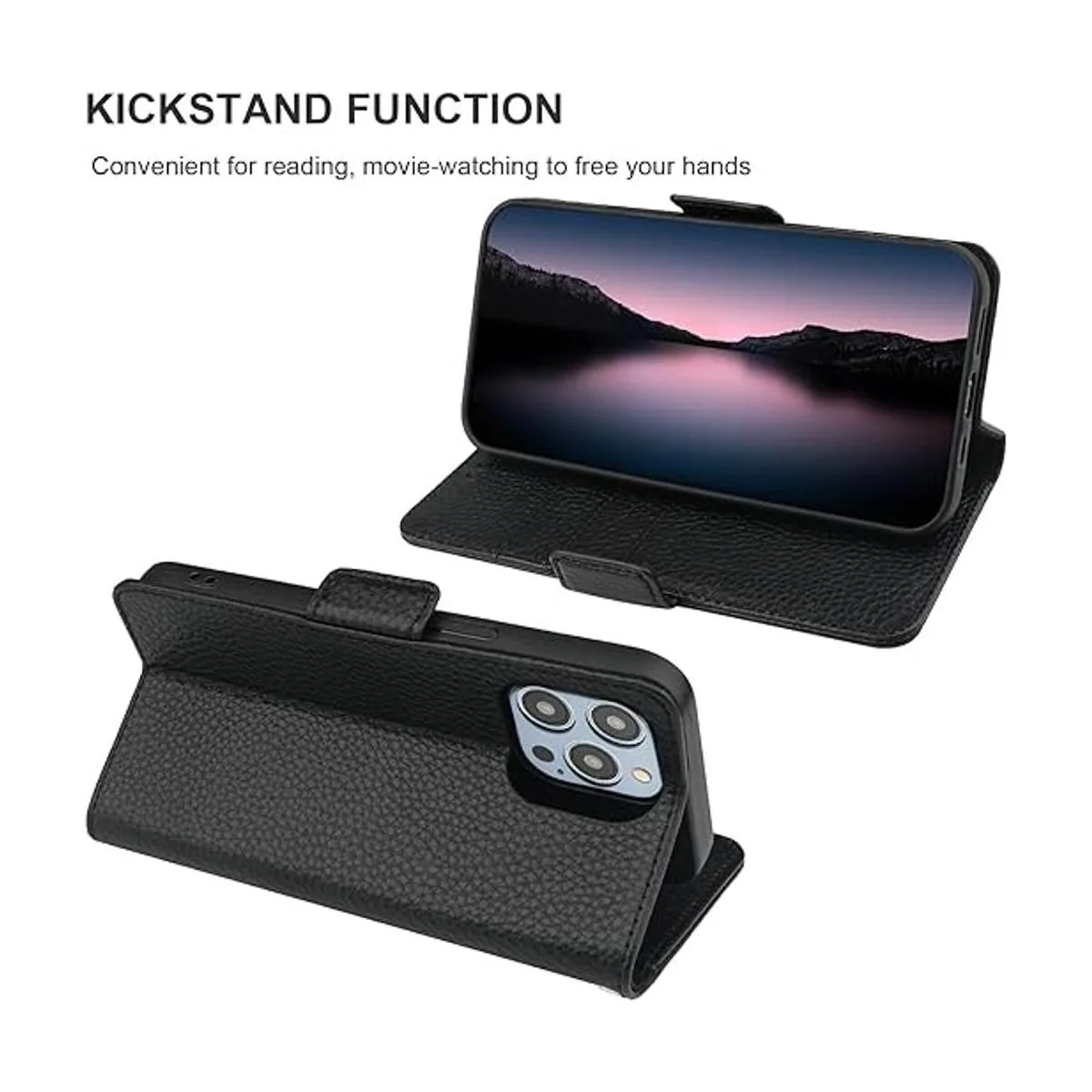 Funda multifuncional con tarjetero : esta funda protectora con tapa soporta carga inalámbrica. Puedes cargar tu teléfono de forma inalámbrica sin tener que quitar esta funda de piel auténtica con grano de litchi. Ten en cuenta que la almohadilla de carga debe estar en el medio de tu teléfono con esta funda tipo folio. Al mismo tiempo, la función atril es conveniente para ver películas, tener videollamadas, etc.