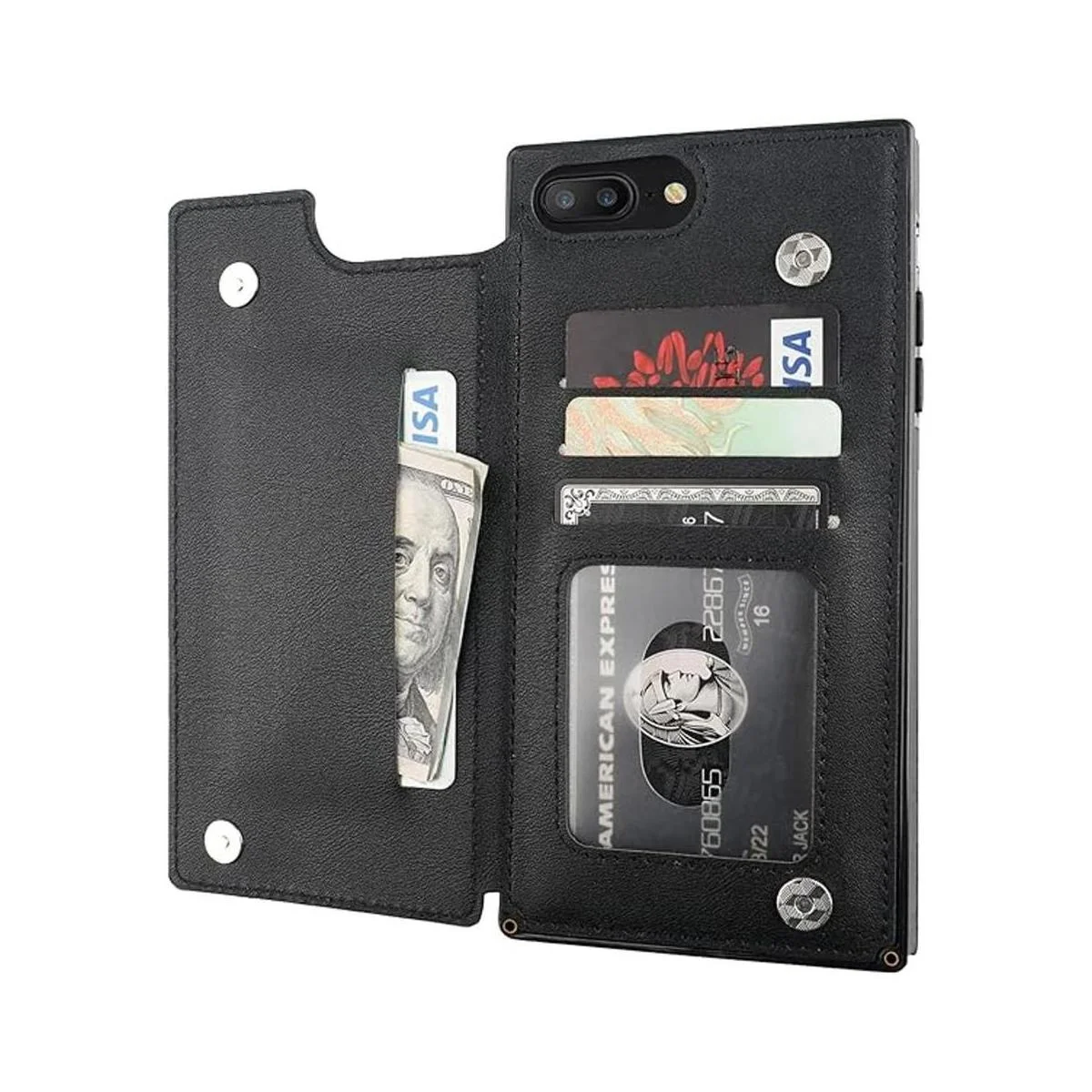 Bocasal Funda tipo cartera para iPhone 7 Plus8 Plus bloqueo RFID Funda tipo cartera con tarjetero de piel sintética suave de alta calidad, soporte a prueba de golpes, cierre magnético de 5.5 pulgadas negro