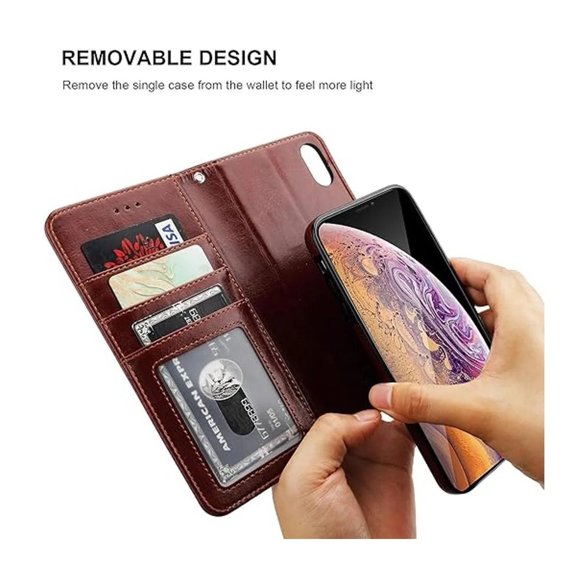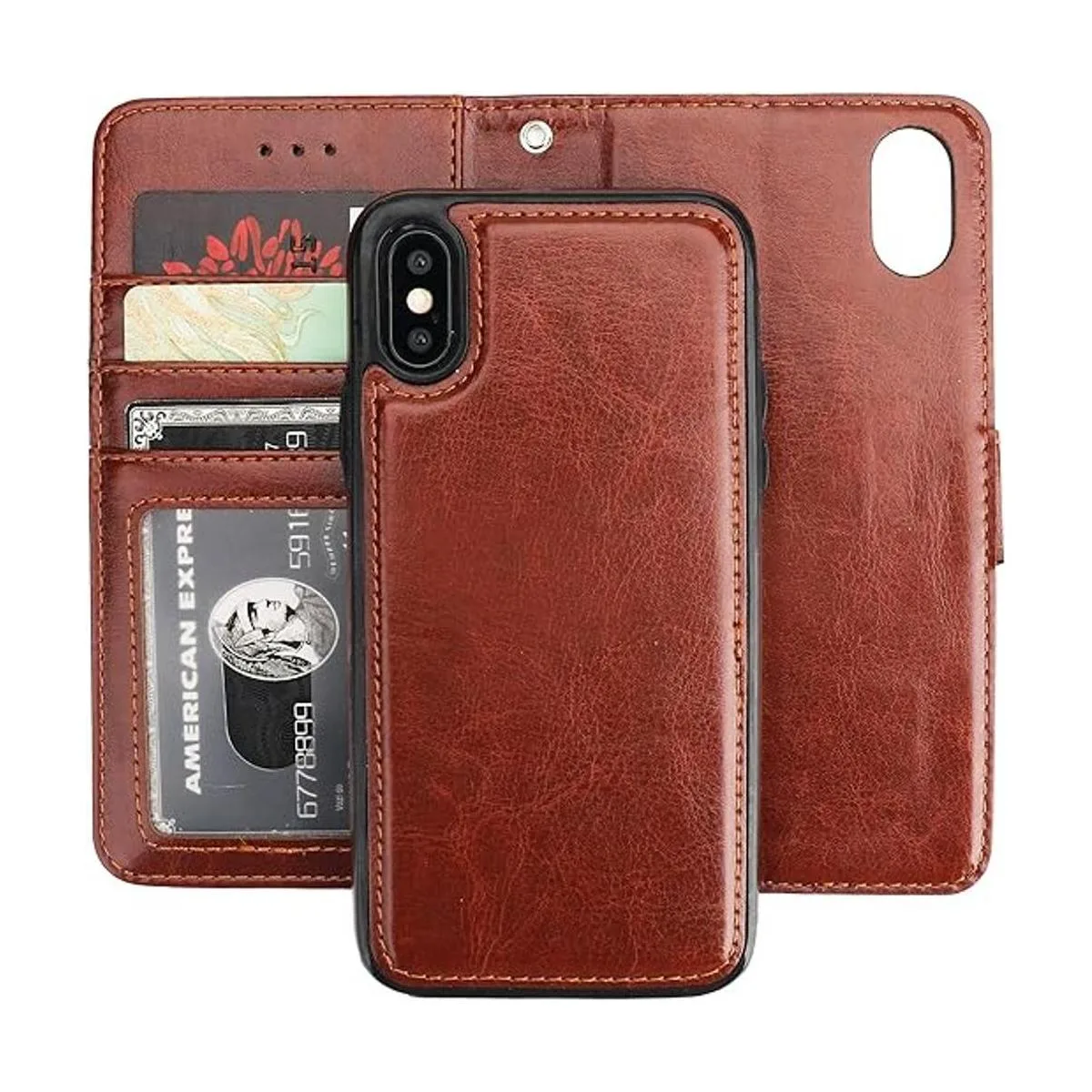 Bocasal Funda tipo cartera para iPhone Xs para iPhone X con tarjetero de piel sintética, magnética, desmontable, a prueba de golpes, correa de muñeca extraíble con tapa para iPhone XsX 5.8 pulgadas marrón