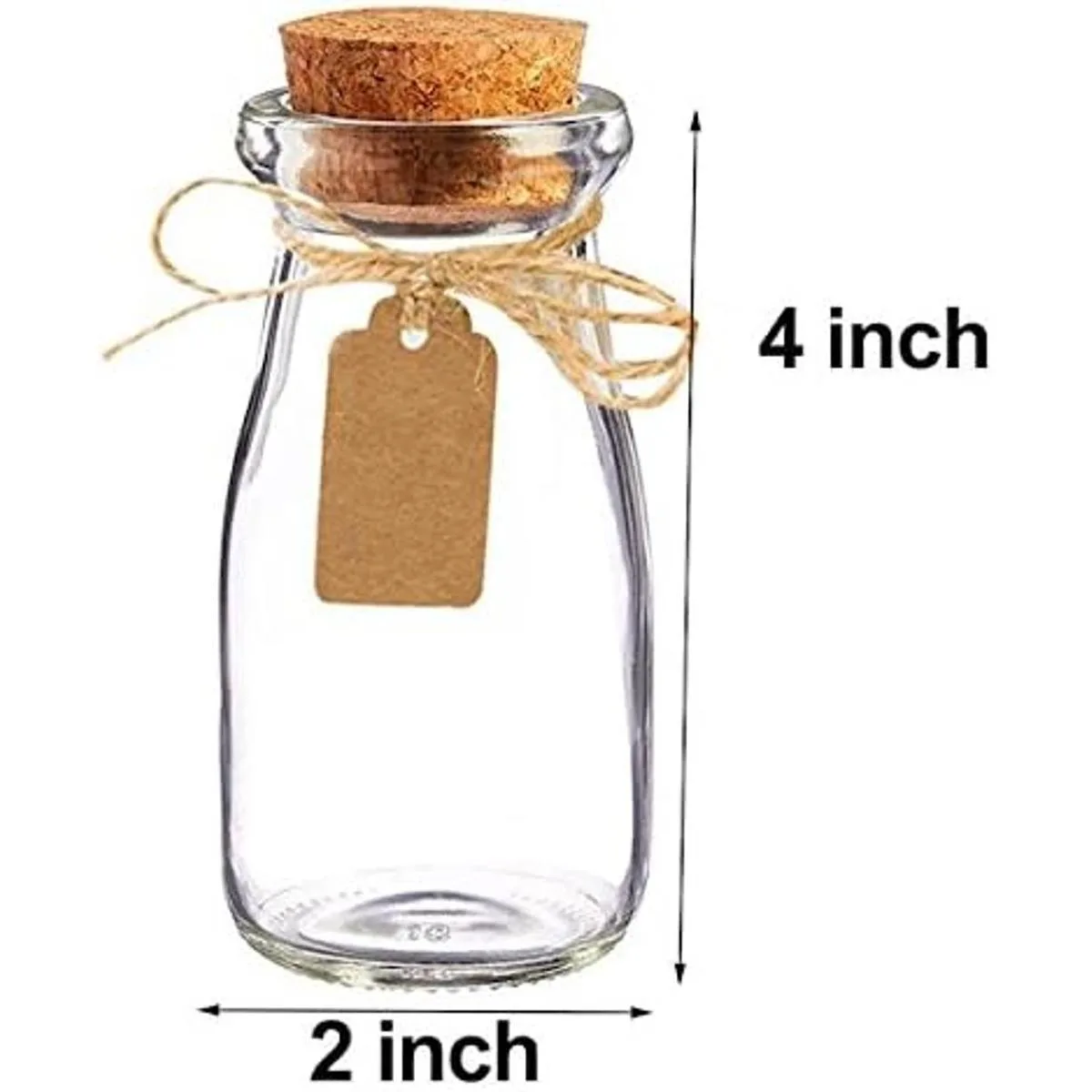 Botella de leche con tapón de corcho. Puede adaptarse a pequeños caramelos, confeti o pequeños accesorios.