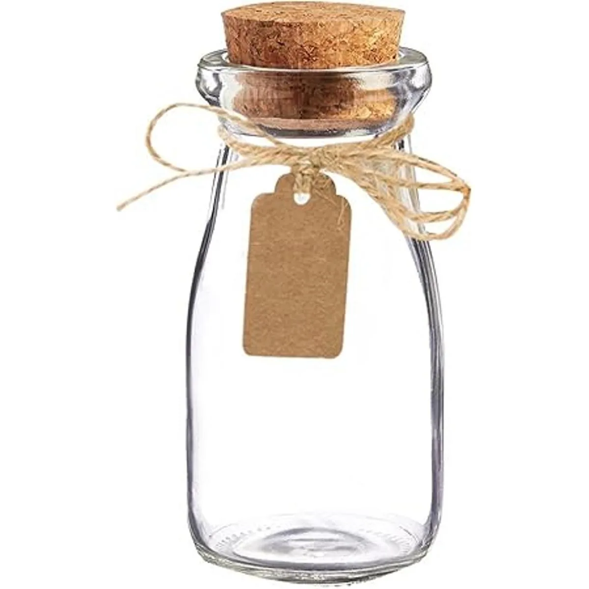 Tarro transparente con forma de botella de leche con tapón redondo de corcho