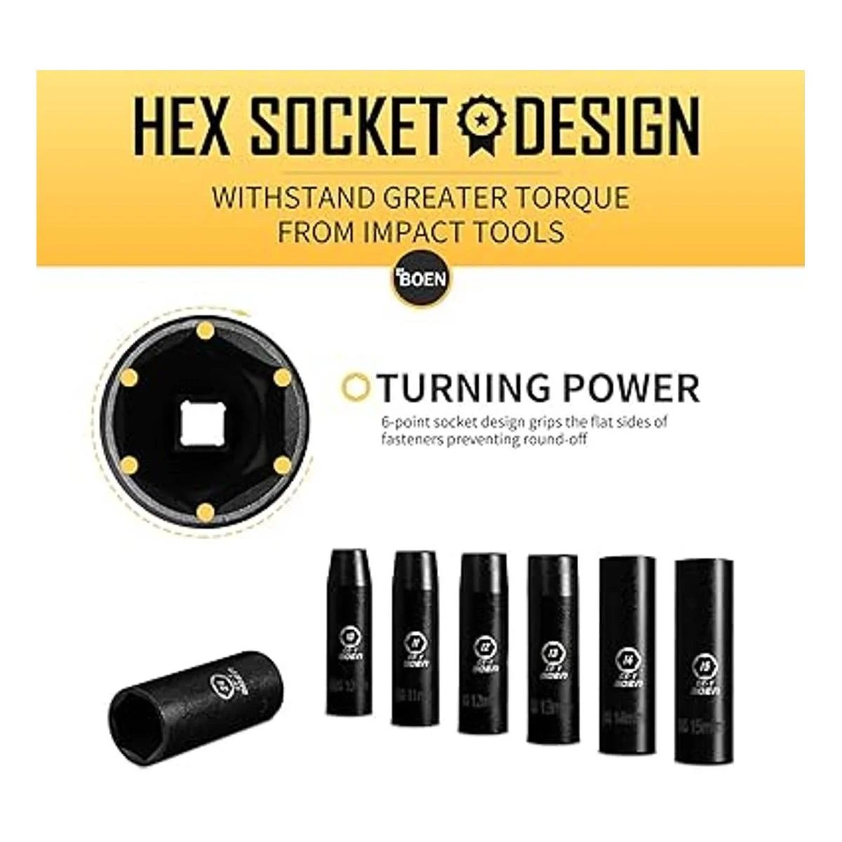 Calidad y garantía de servicio El juego de enchufes profundos cumple con las normas ANSI. Ofrecemos 1 año de garantía de calidad. Todos los enchufes hexagonales han sido rigurosamente probados para garantizar el mejor rendimiento y durabilidad. Si tienes alguna pregunta, no dudes en ponerte en contacto con nosotros.