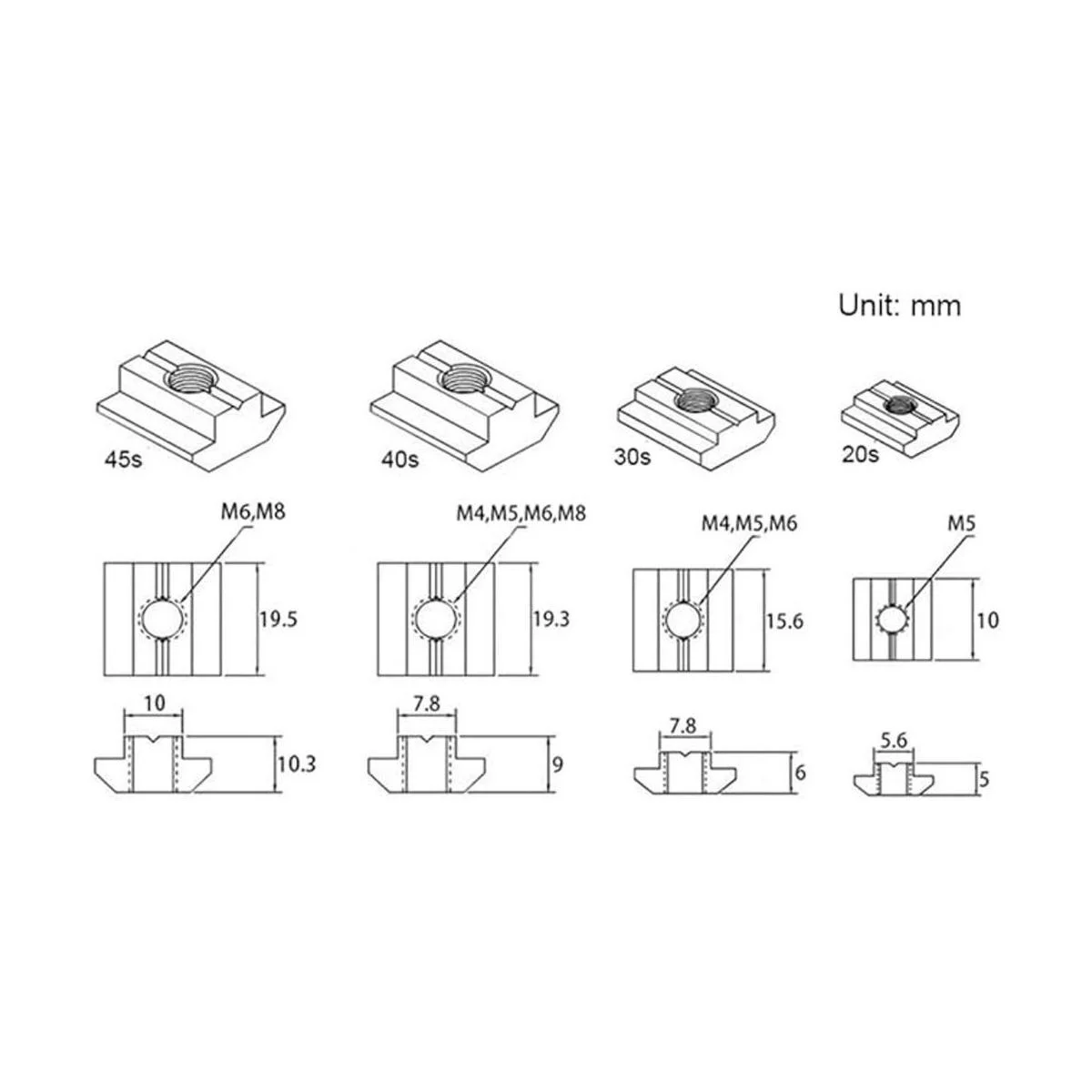 Boeray 50 piezas M3 Slide in T Nut Tuerca deslizante para 2020 Sereis Aluminio Extrusión Perfil Ranura de 0.236 in